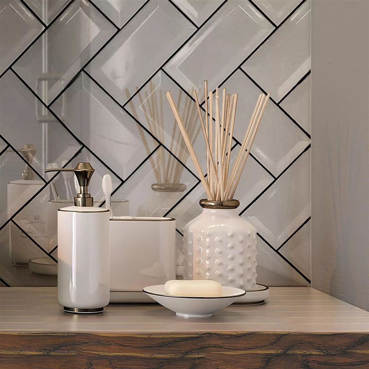Die Metro Wandfliesen "Heliopolis Facette Silber" bringen Glanz und Modernität in Ihr Zuhause. Das nicht rektifizierte, glasierte Steingut in glänzendem Silber verleiht Ihren Innenräumen, Küche, Bad, Dusche und Wohnraum einen zeitgemäßen Charme.