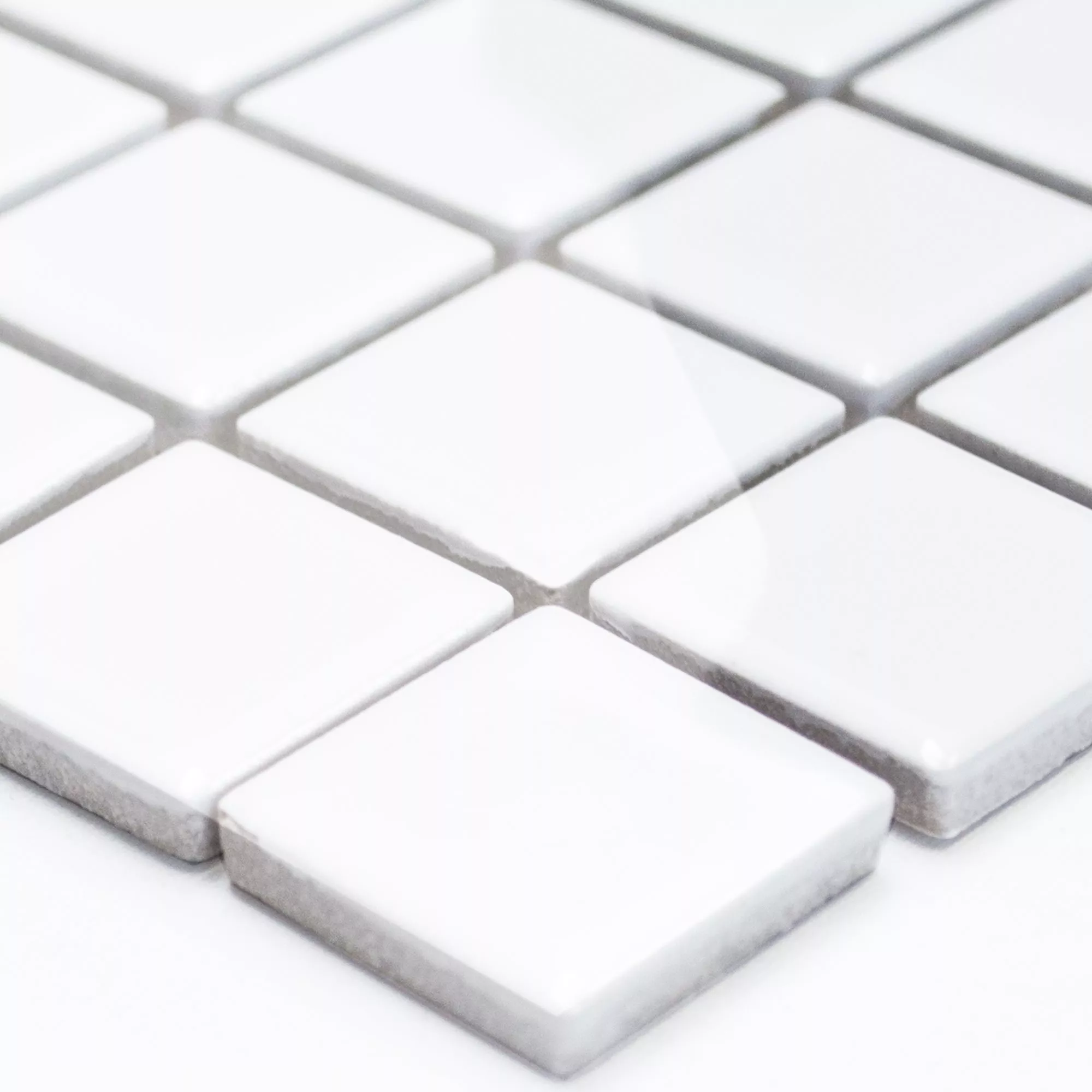 Do you want to re-tile your bathroom or kitchen backsplash and are looking for an elegant solution that is not too flashy and definitely doesn't clash with your kitchen furniture? Then the ceramic mosaic tiles Hakan in white glossy are just right for you. Due to their small size, the Hakan ceramic mosaic tiles appear more delicate and elegant than larger tiles. Their uniform white or black color makes them neutral and lets your bathroom or kitchen splashback discreetly fade into the background where you want to show off other objects to their best advantage.