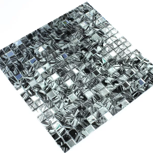 Mosaic Tiles Glass Mirror Grey Marbled 15x15x6mm