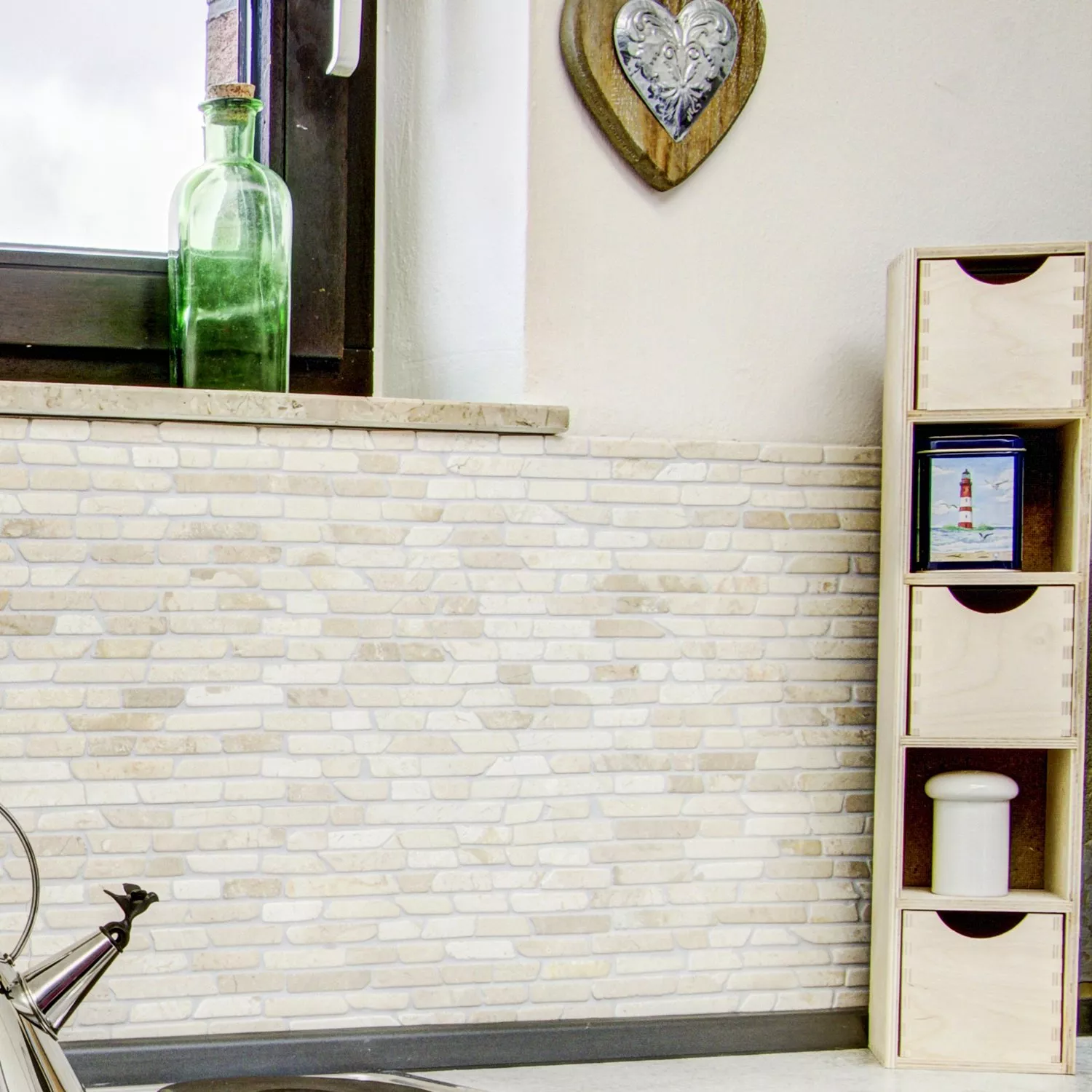 Natural Stone Marble Mosaic Tiles Bali Biancone Beige Brick