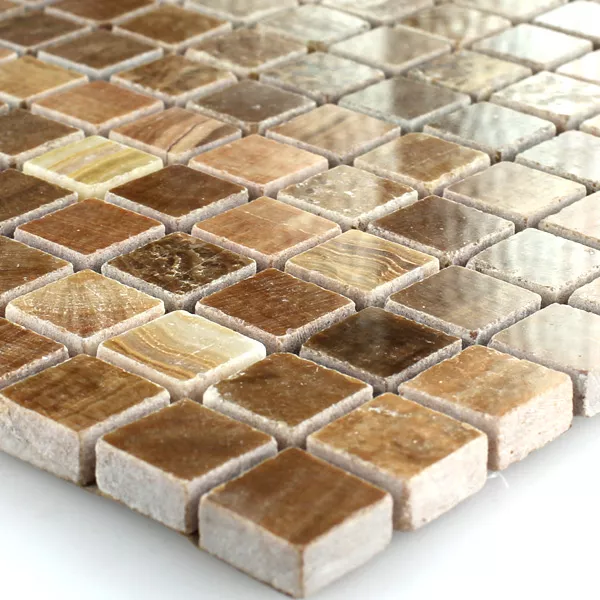 Mosaic Tiles Marble Brown Polished 15x15x7mm