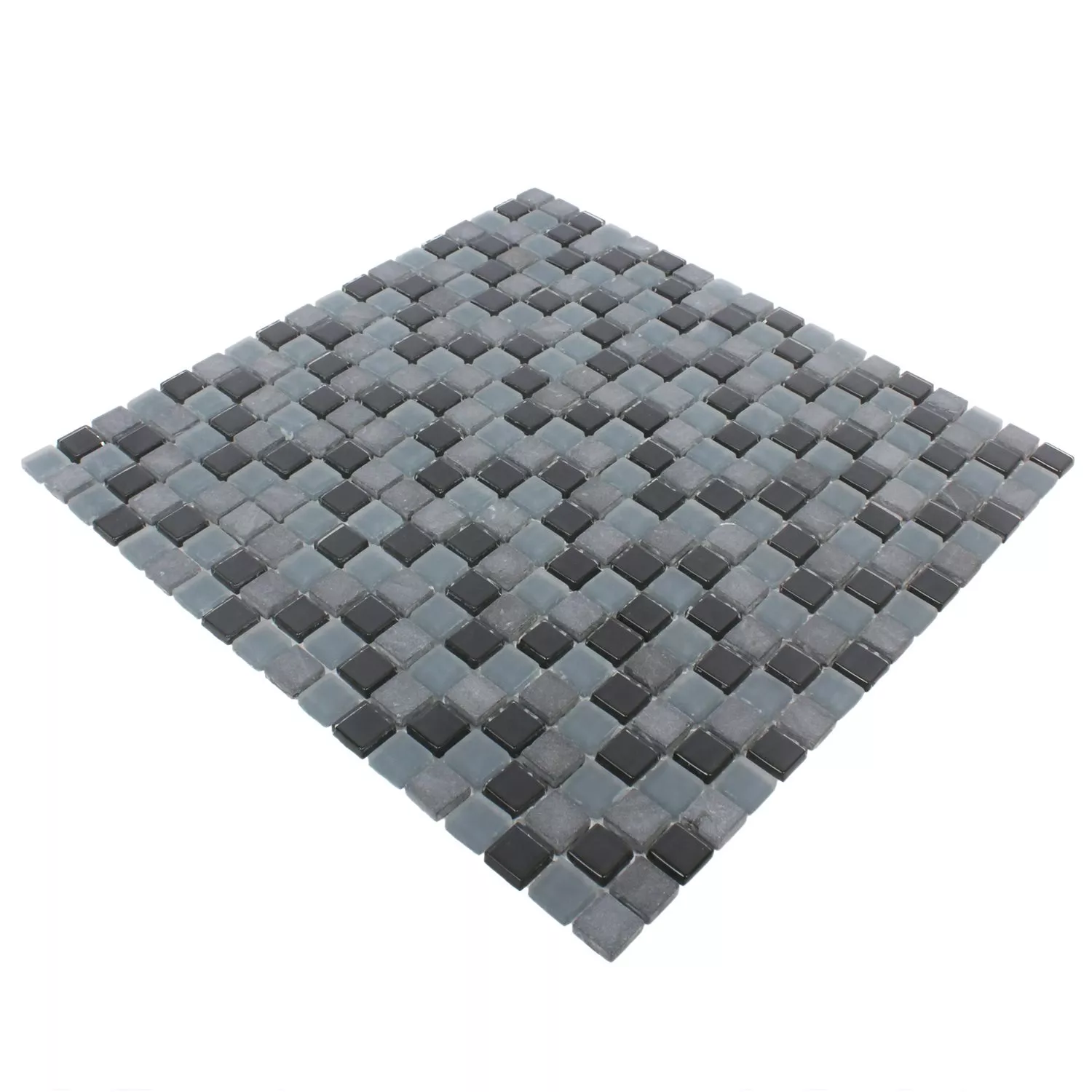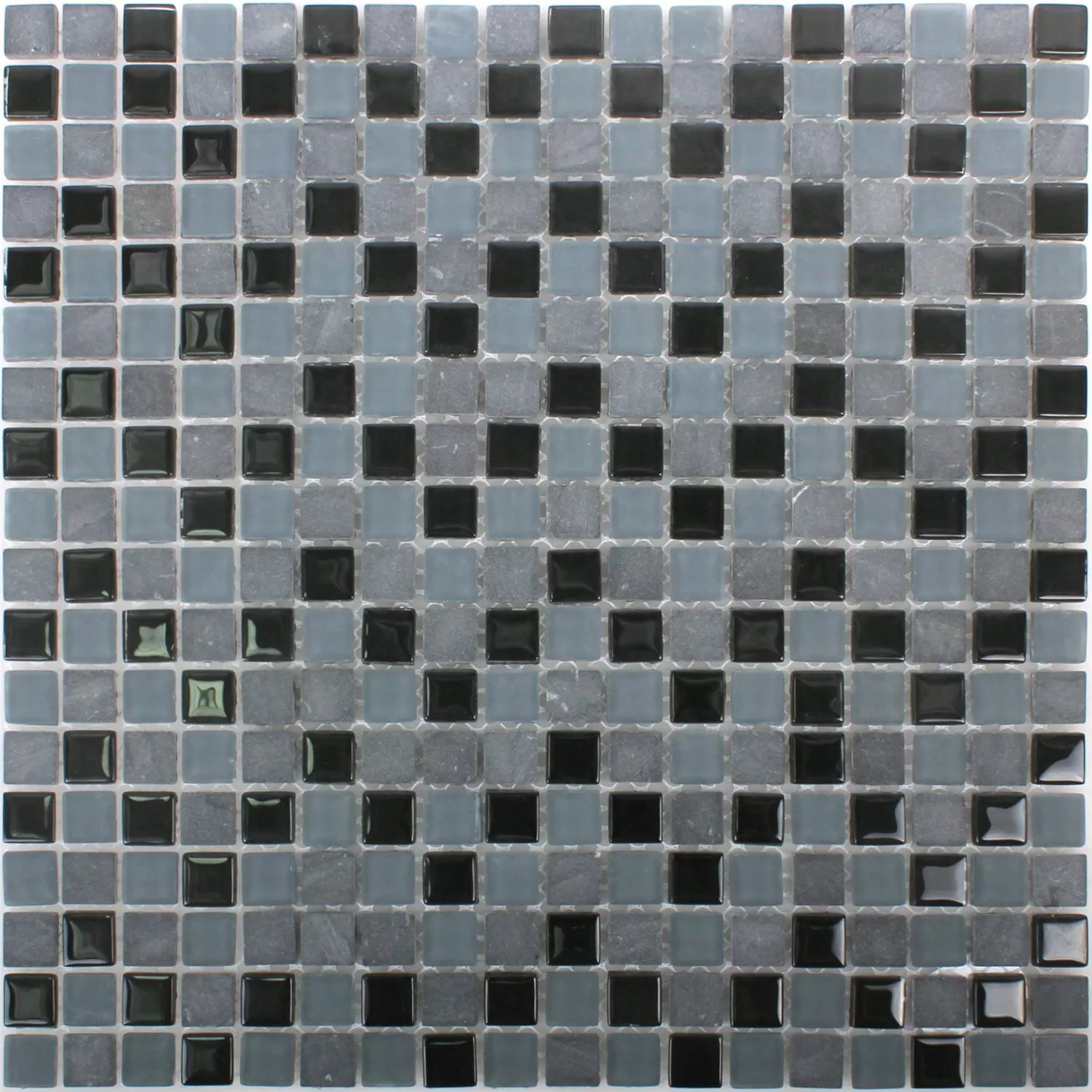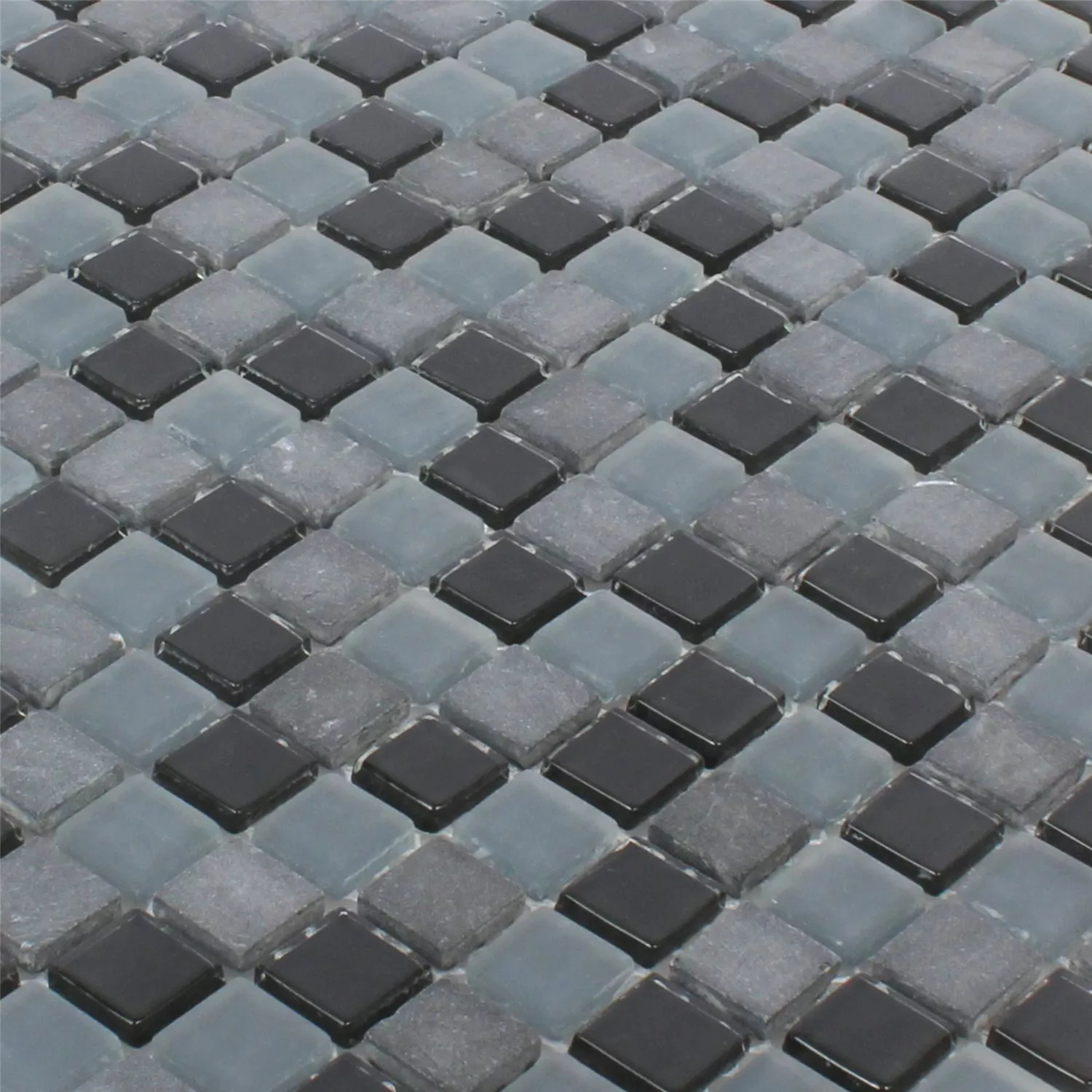Mosaic Tiles Marble Glass Mix Kobra Black Grey 15