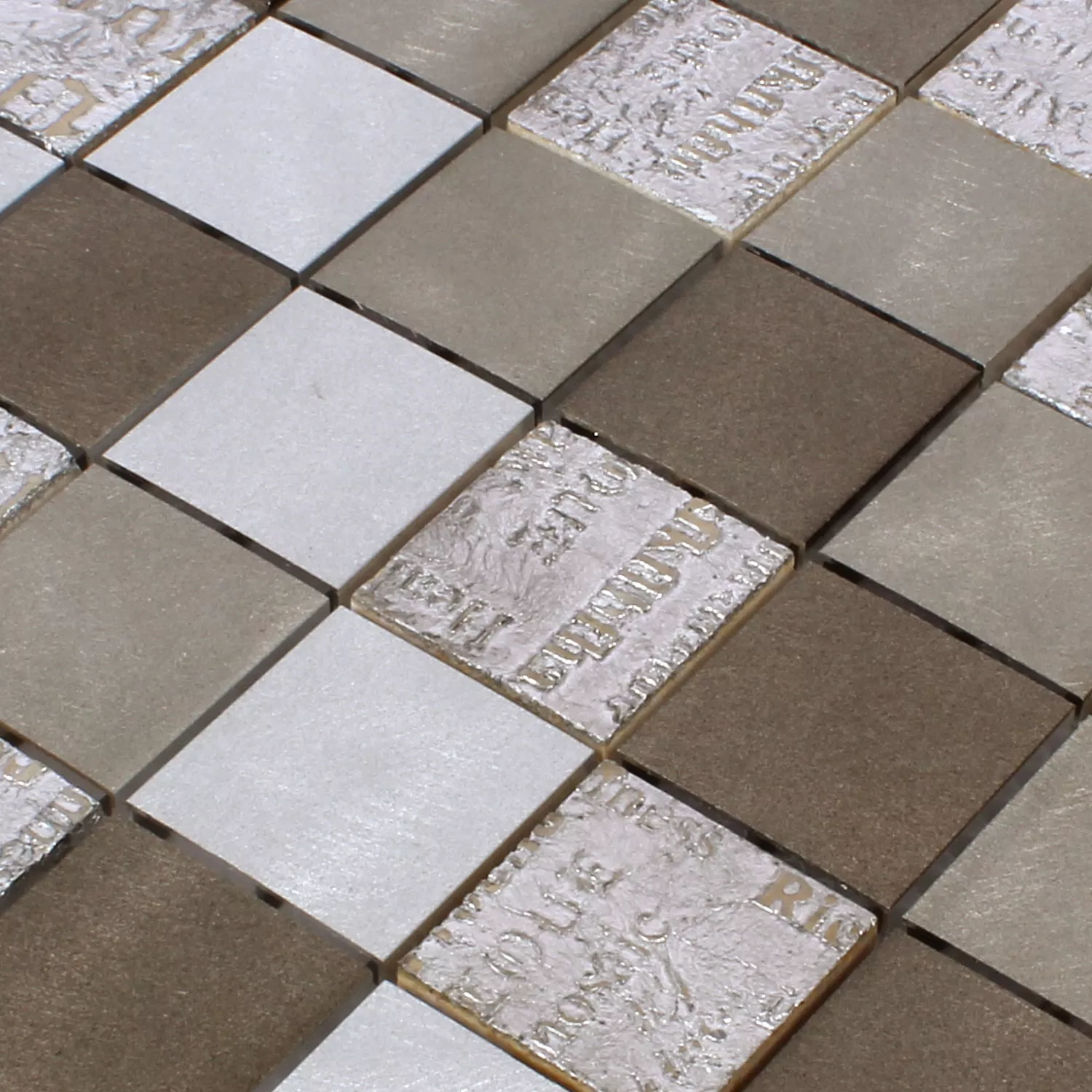 Mosaic Tiles Metal Natural Stone Parole Brown Silver