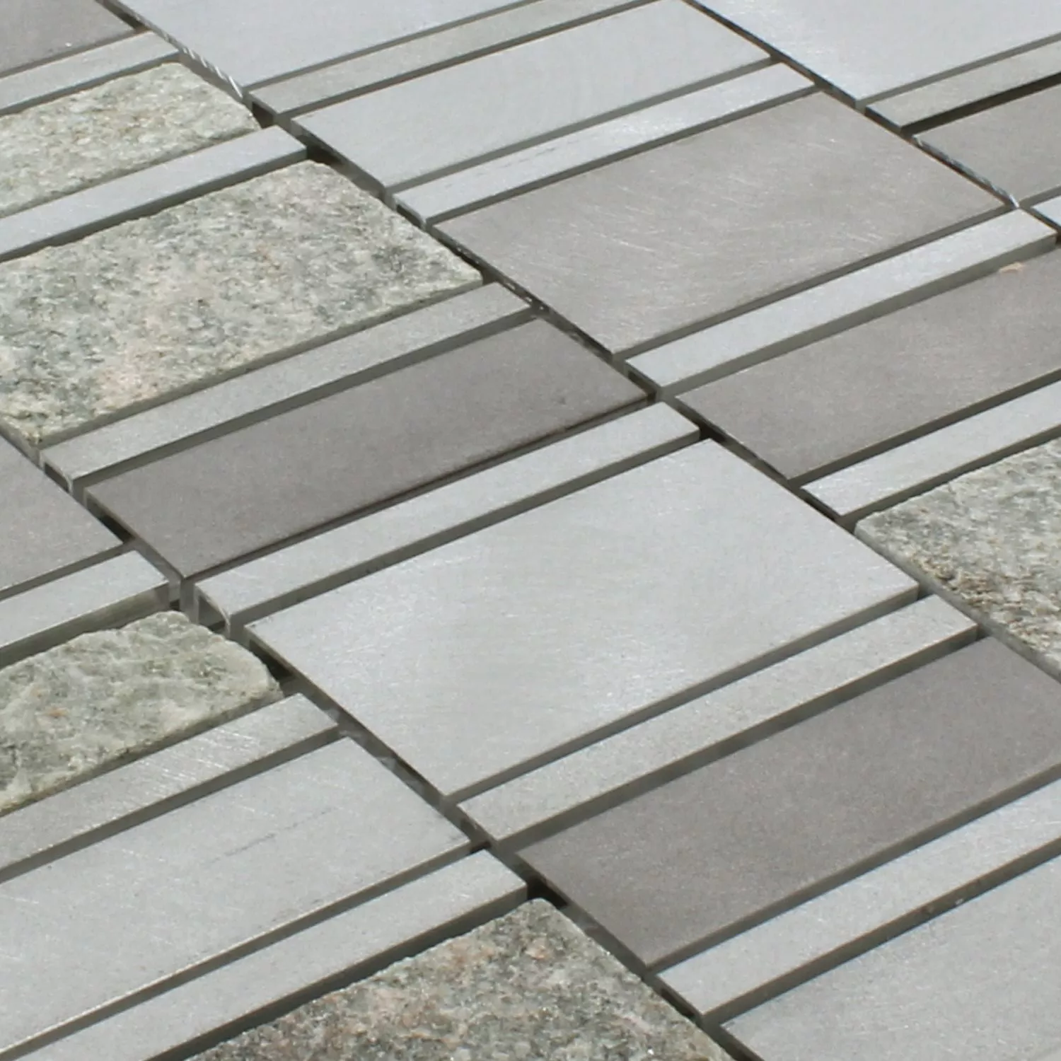 Modern mosaic tiles provide a touch of luxury on the wall, because many of the beautiful wall tiles impress with their unique design and high-quality materials. The Avanti models in gray are also impressive as aluminum natural stone tiles with the best workmanship in every detail. The fine mosaic tiles are easy to lay, so that they make walls shine in no time in a new building or after renovation in an old building. The subtly colored wall tiles are arranged in rectangles of different sizes, some made of aluminum and some made of natural stone. So every wall with the aluminum natural stone tiles remains a visual highlight in the room, because the eye of the beholder never gets bored with these beautiful mosaic tiles.