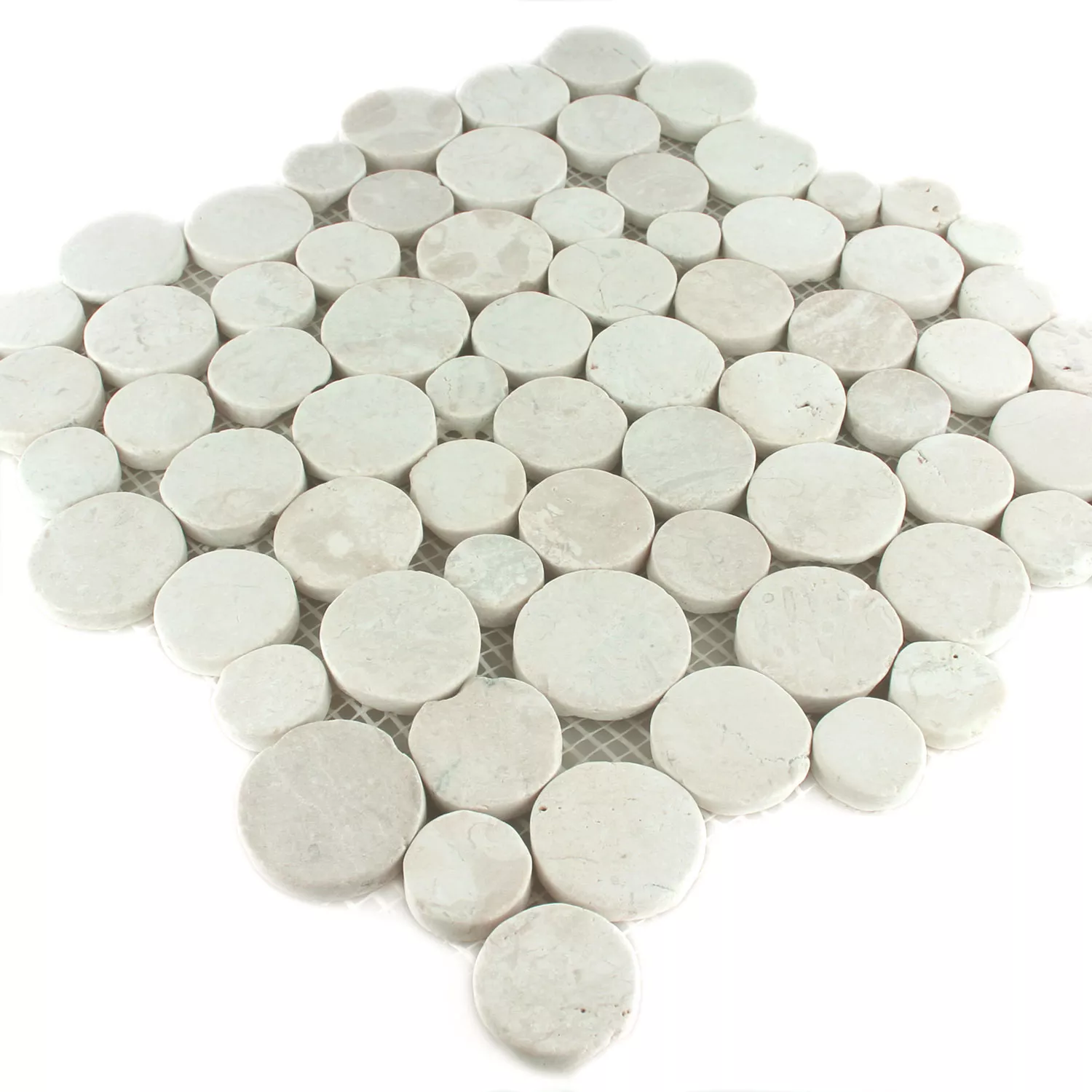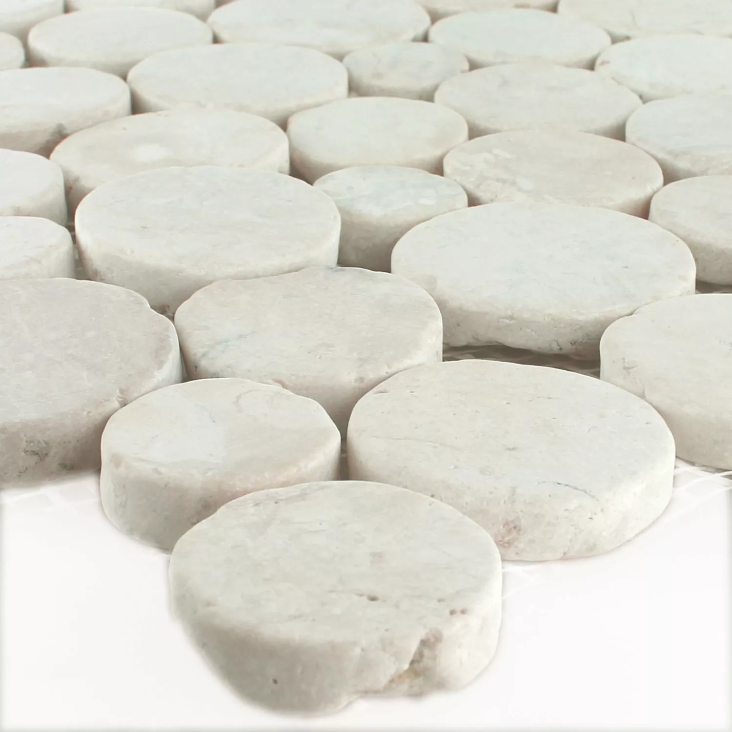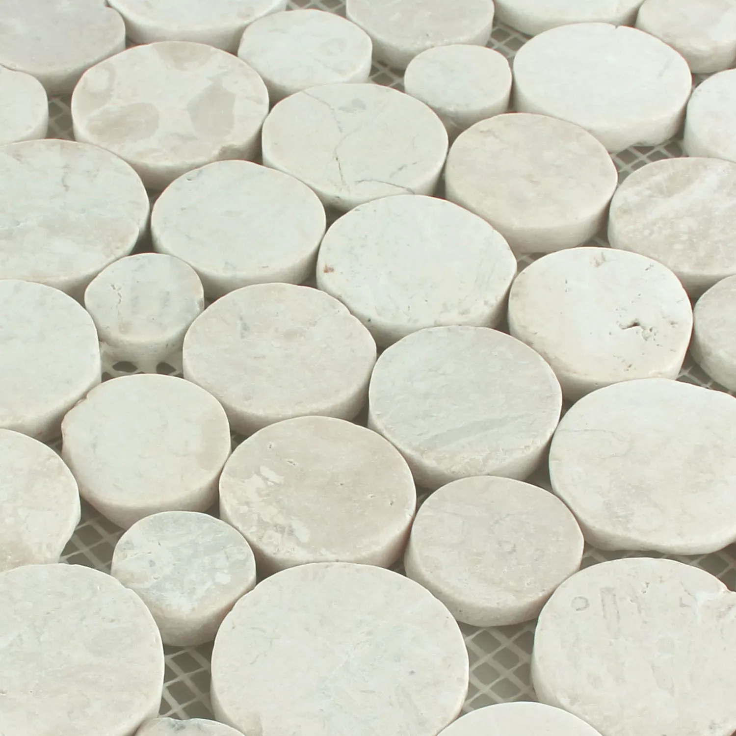 Mosaic Tiles River Pebbles Coin Round White