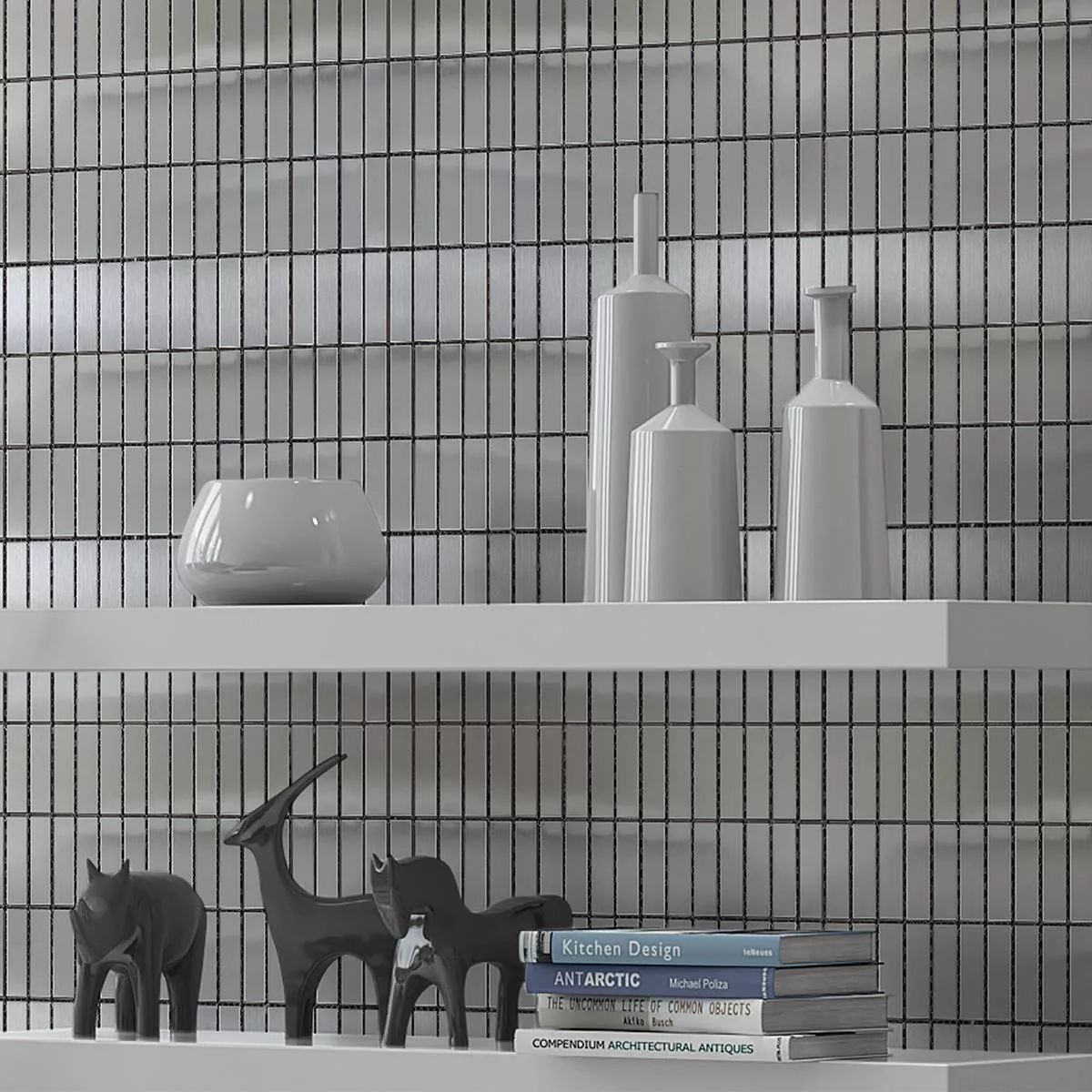 Set stylish accents with the mosaic tiles made of brushed stainless steel Silvernova sticks. These high-quality stainless steel tiles combine modern design with a fascinating metallic look and give every room a touch of elegance.