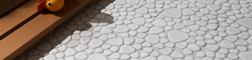 Pebbles belong to the natural stones and should therefore be used only with laying material that is suitable for ceramic mosaic pebbles. If a different adhesive were used, the amount of acid and cement it contained would attack the surface of the ceramic mosaic pebble and could permanently damage it.