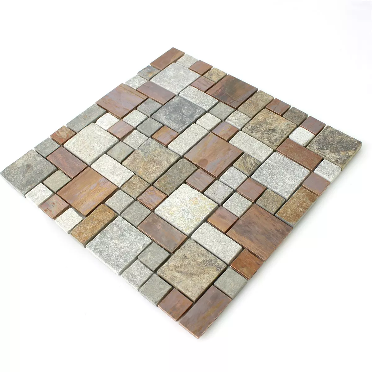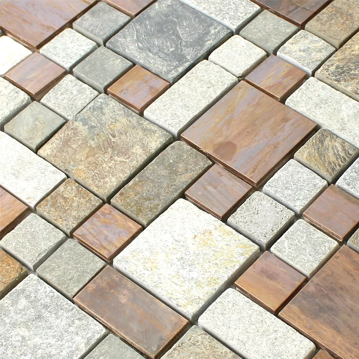 Natural Stone Quartzite Aluminium Metal Mosaic Tiles Istanbul Copper Brown
