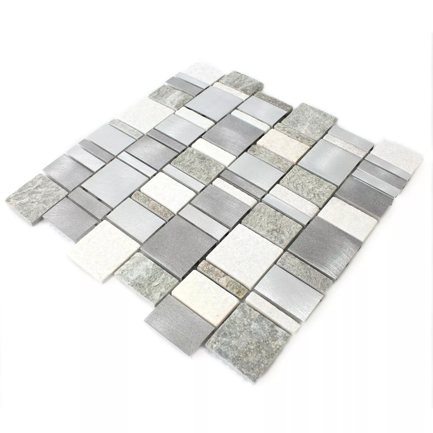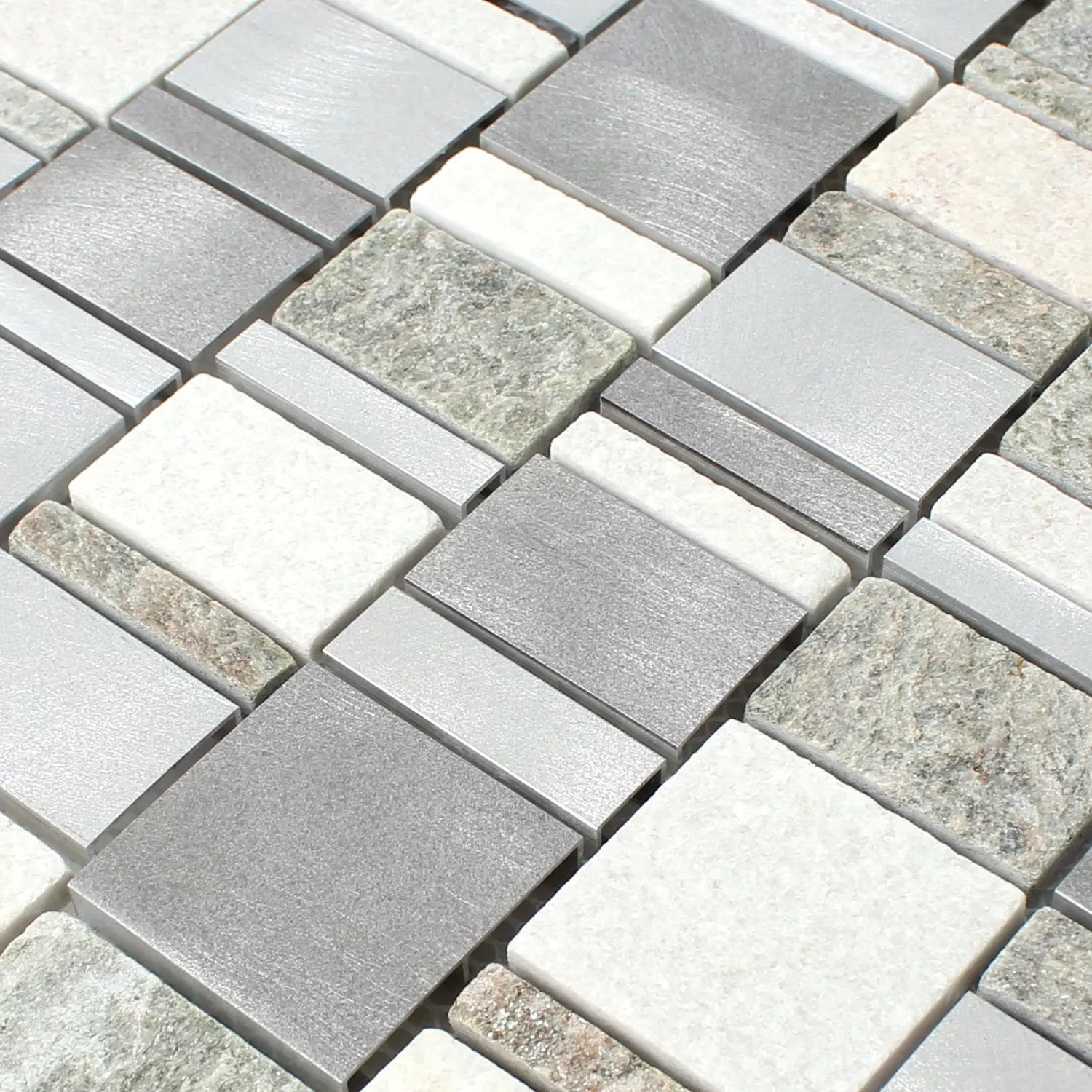 Natural Stone Quartzite Metal Aluminium Mosaic Tiles Topsail Silver