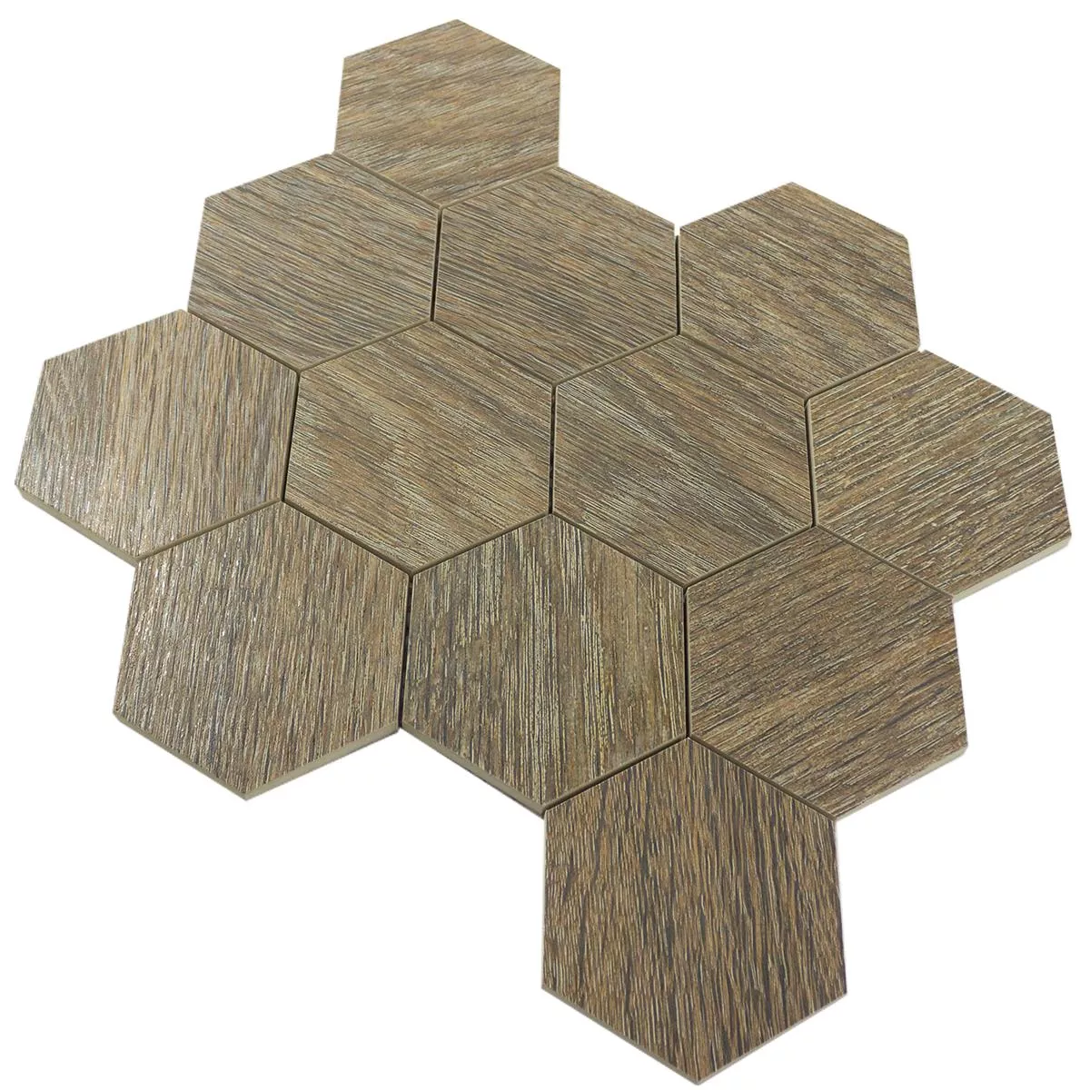 Porcelain Stoneware Mosaic Tiles Hexagon Straubing Brown