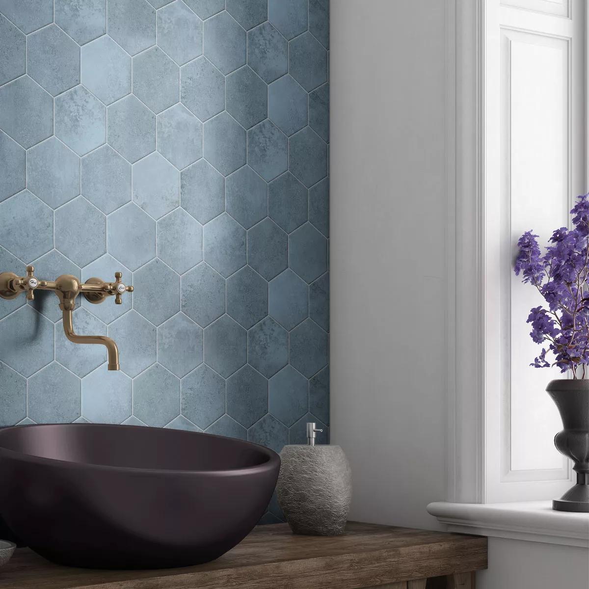 Discover our versatile Palencia porcelain stoneware tiles in elegant blue with a hexagon shape - the perfect choice for your swimming pool, pool and many other areas. These high-quality tiles offer a combination of aesthetics and functionality: