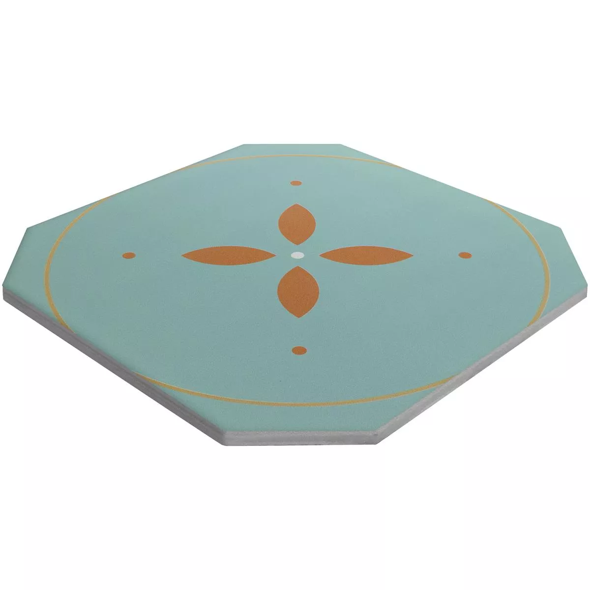Porcelain Stoneware Tiles Genexia Decor Cyan Octagon 20x20cm
