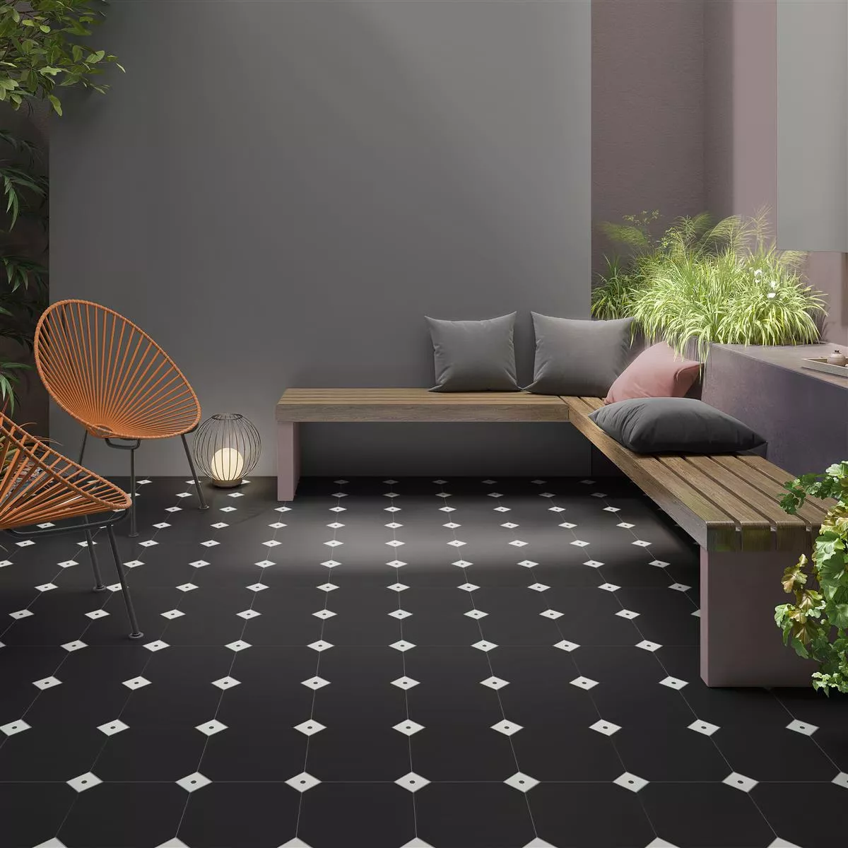 Porcelain stoneware tiles Genexia Uni Black Octagon 20x20cm - classic elegance in black