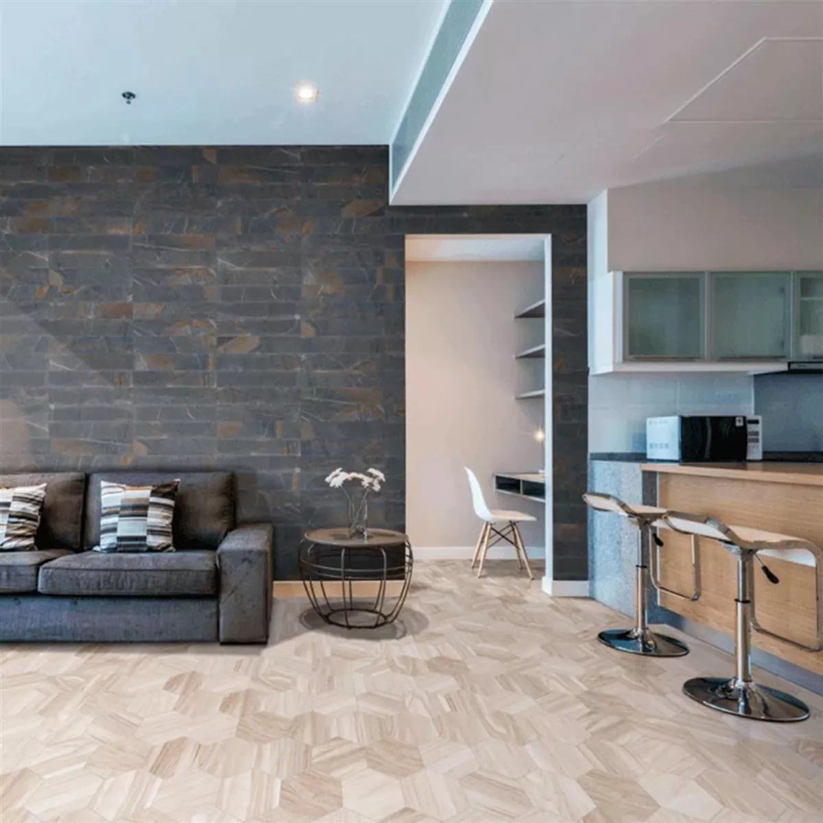 The Hexwood tiles impress with their matt surface and authentic wood look, which gives every room a warm and inviting atmosphere. With an abrasion rating of 2, they are ideal for areas with medium traffic and are perfect for kitchens, bathrooms, showers and other wet areas as well as indoor living spaces.