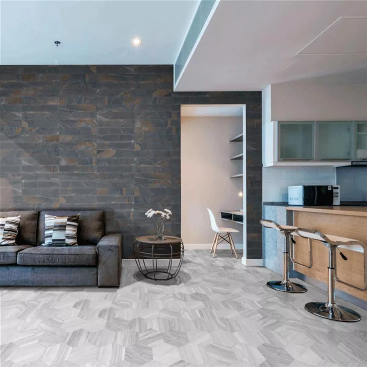 Give your rooms a new look and create a feel-good atmosphere with the Hexwood Hexagon Grey porcelain stoneware tiles.