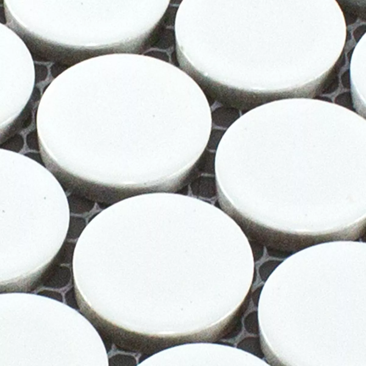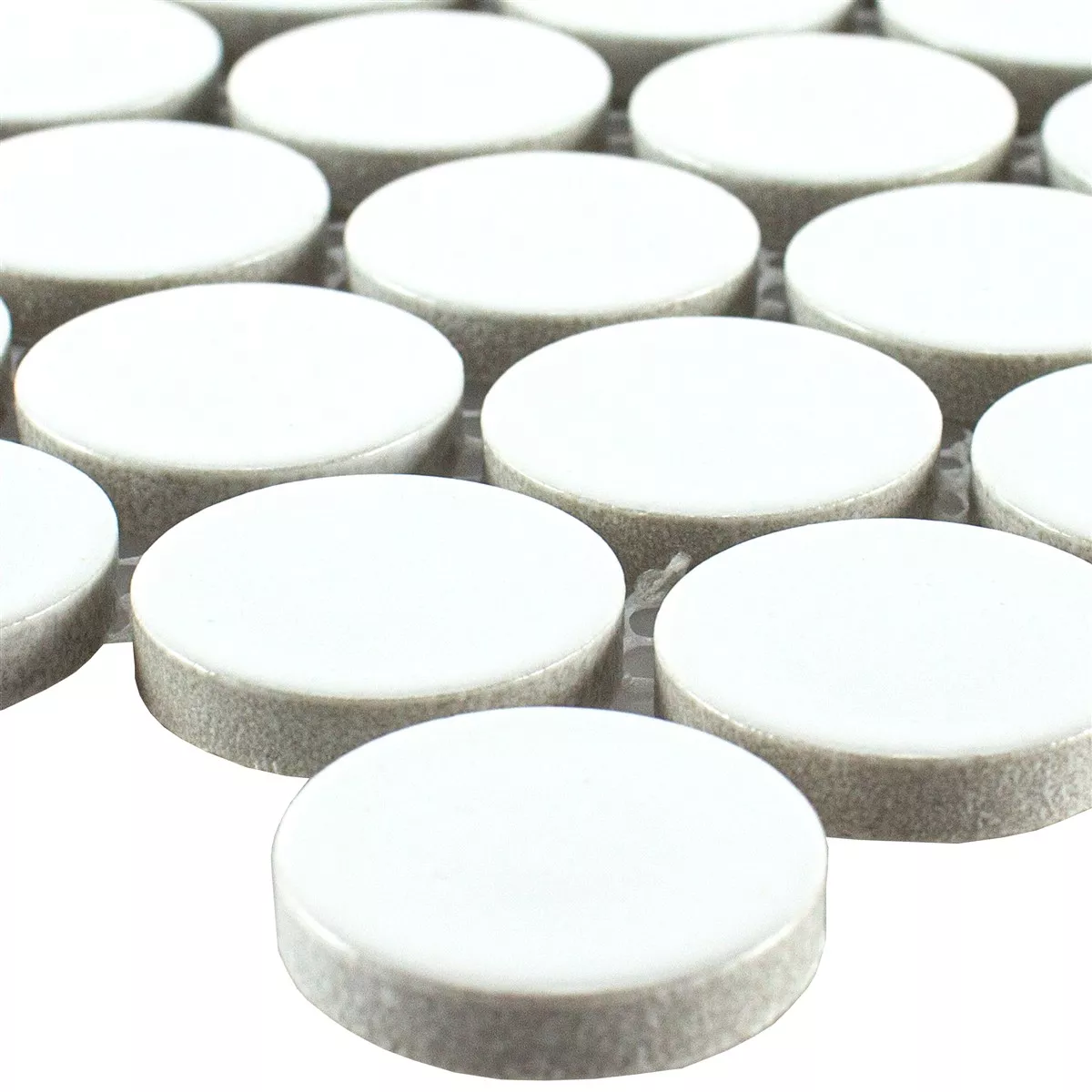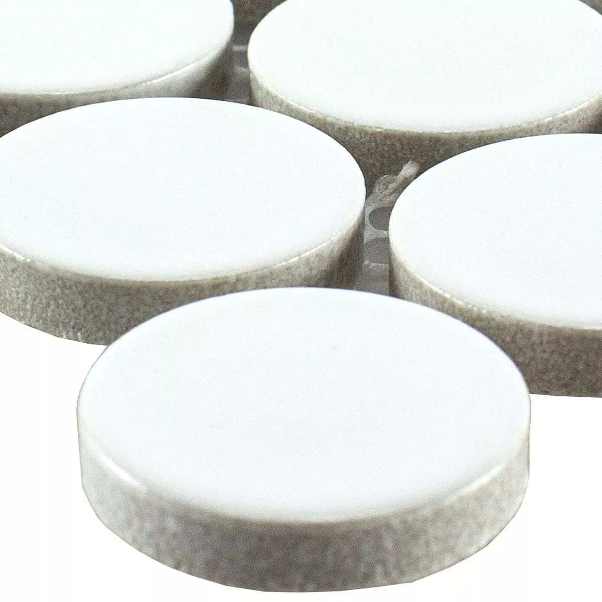 Sample Ceramic Button Mosaic Tiles LaRosita Blanc Glossy