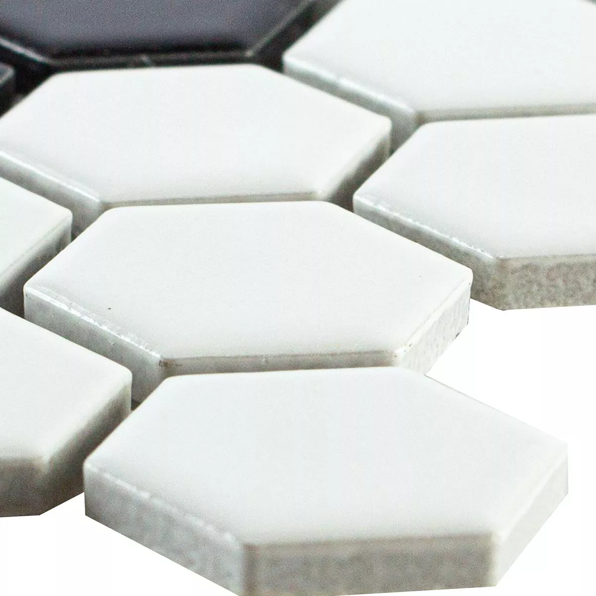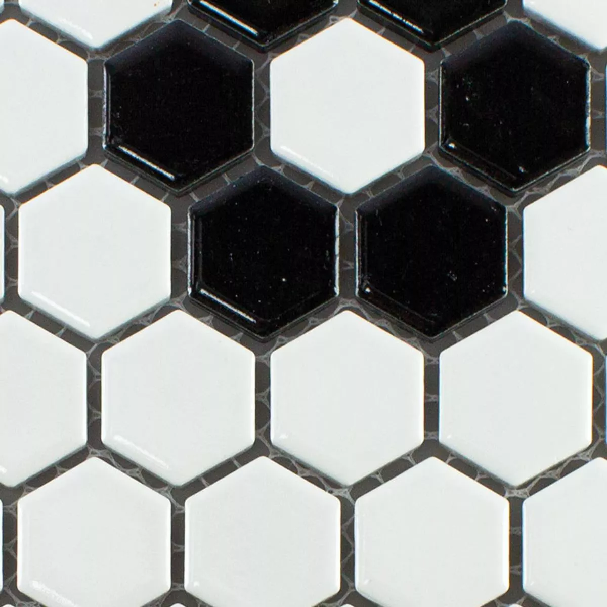Sample Ceramic Mosaic Tile Carlsbad Flower Black Blanc