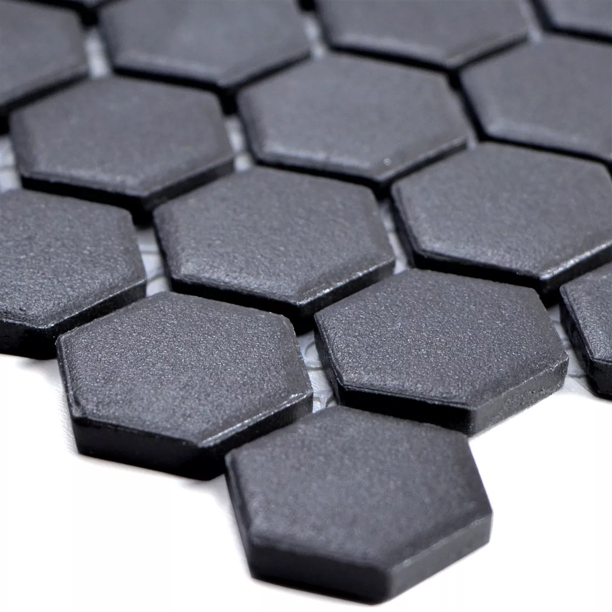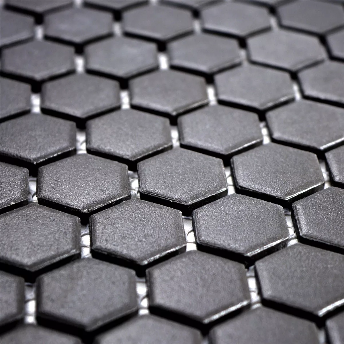 Sample Ceramic Mosaic Tiles Hexagon Zeinal Unglazed Black R10B