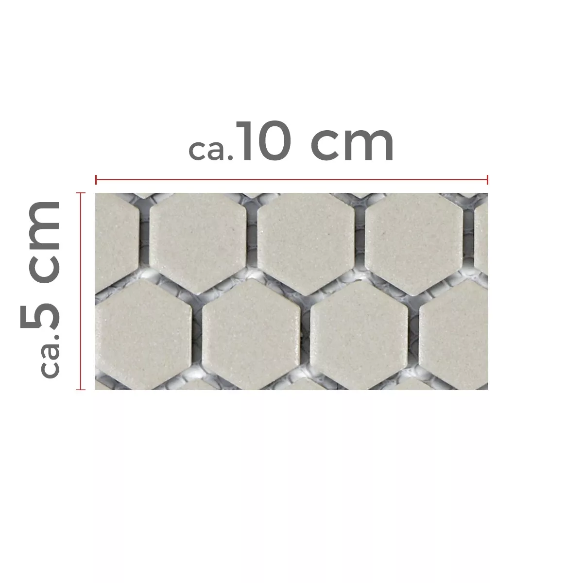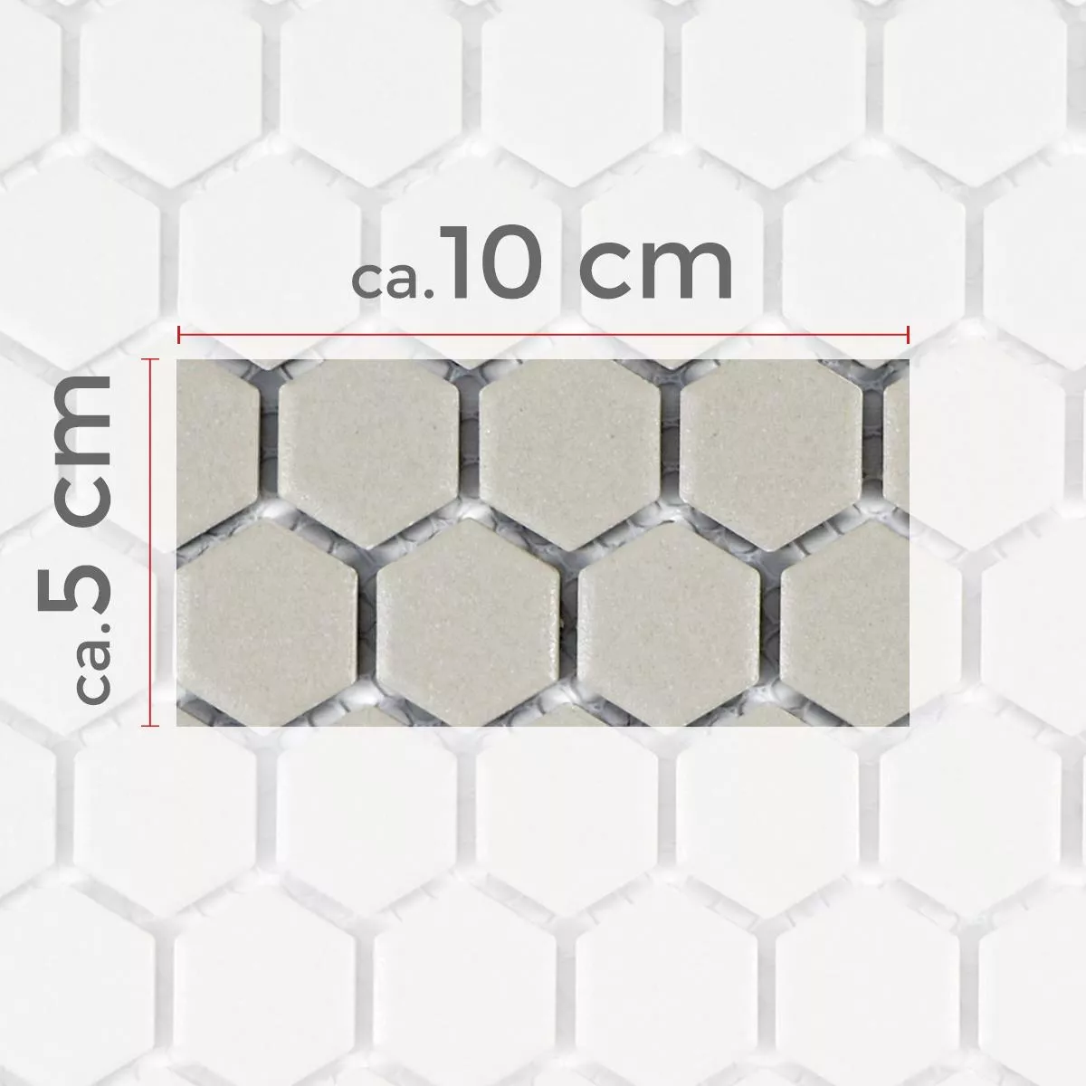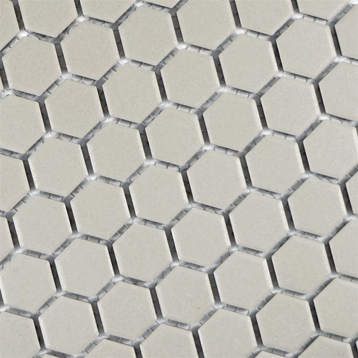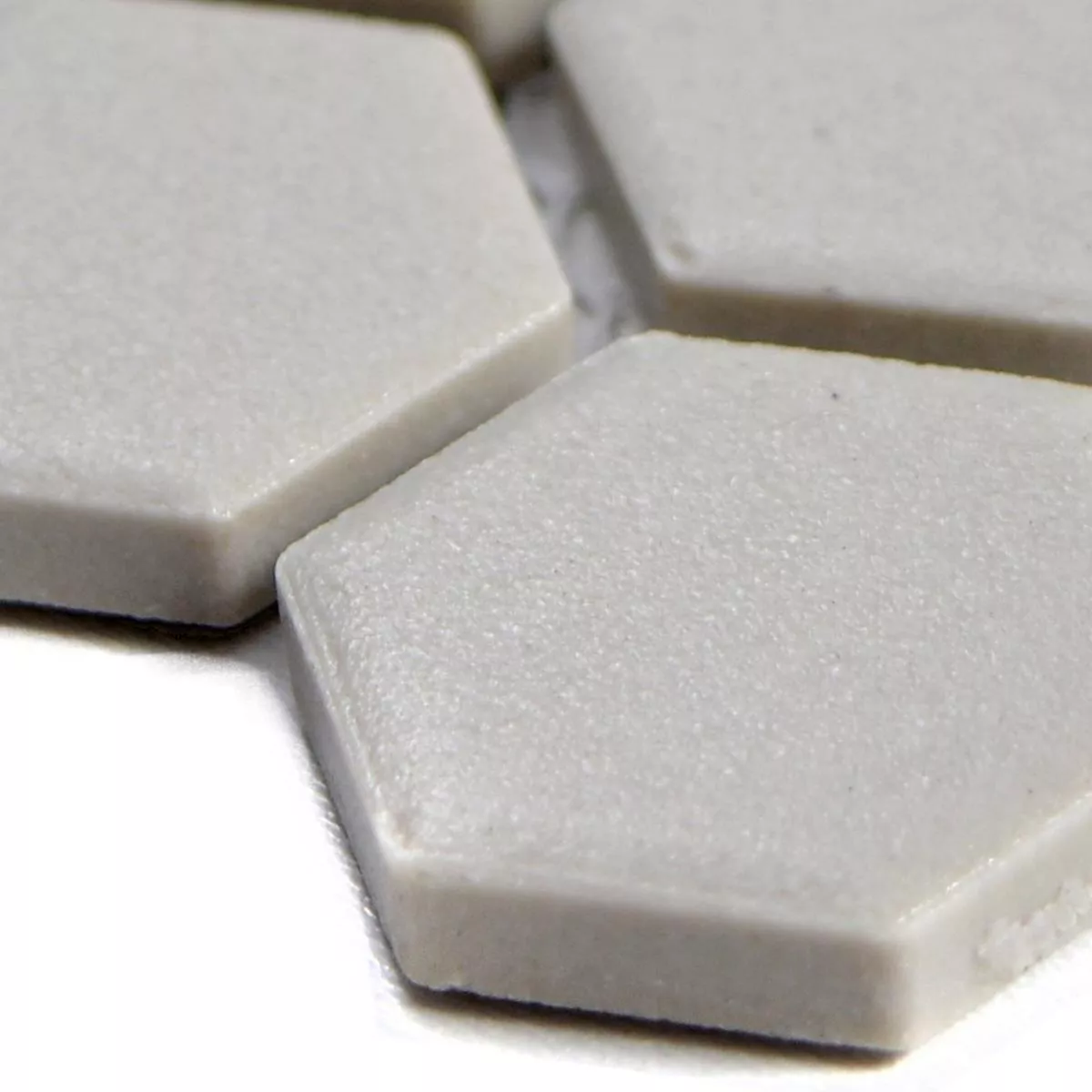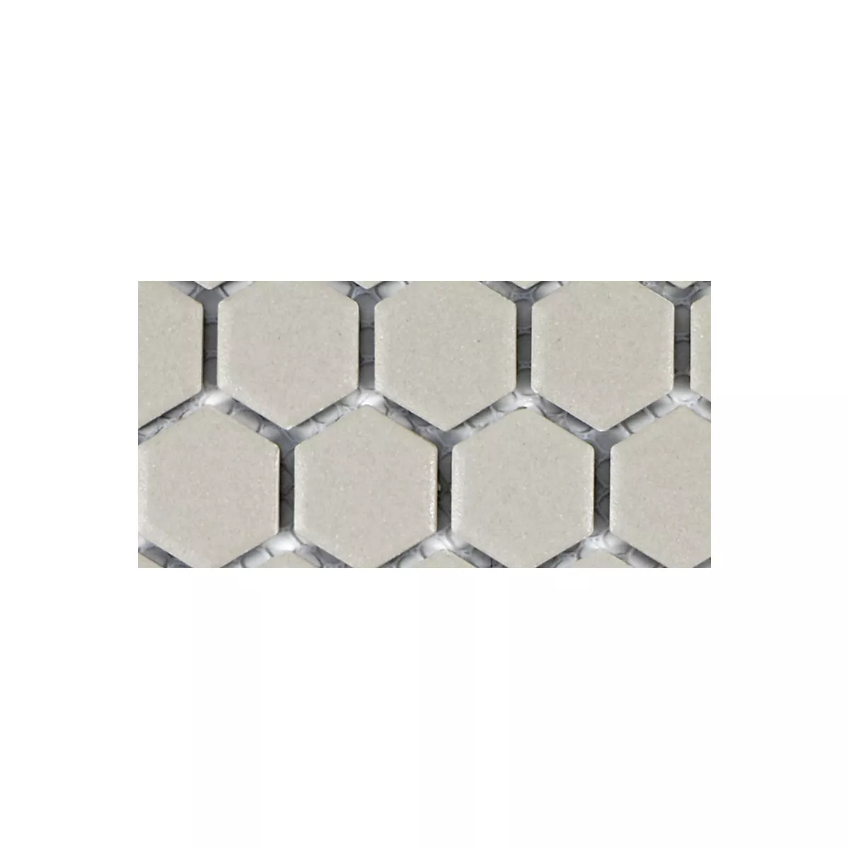 Sample Ceramic Mosaic Tiles Hexagon Zeinal Unglazed Light Grey R10B