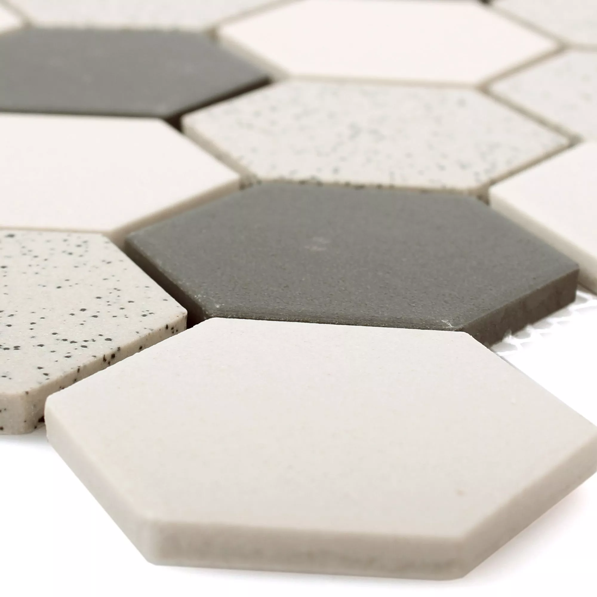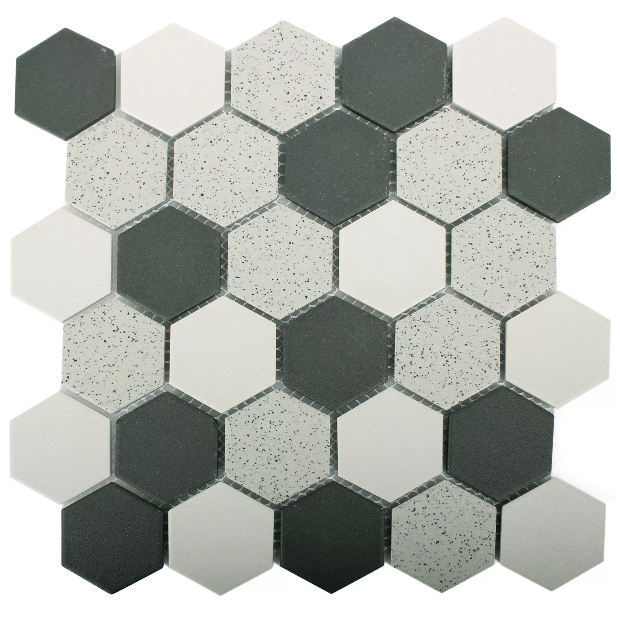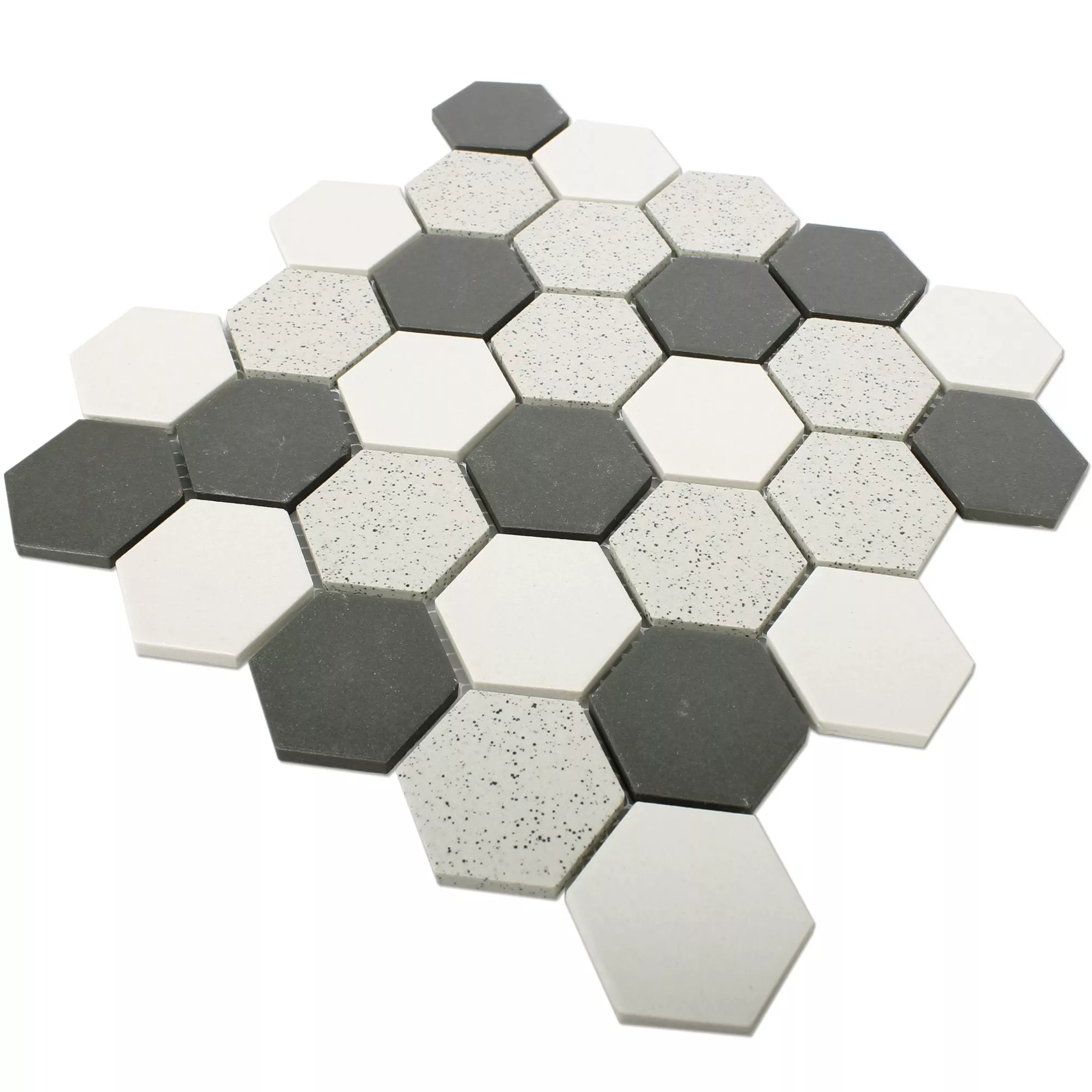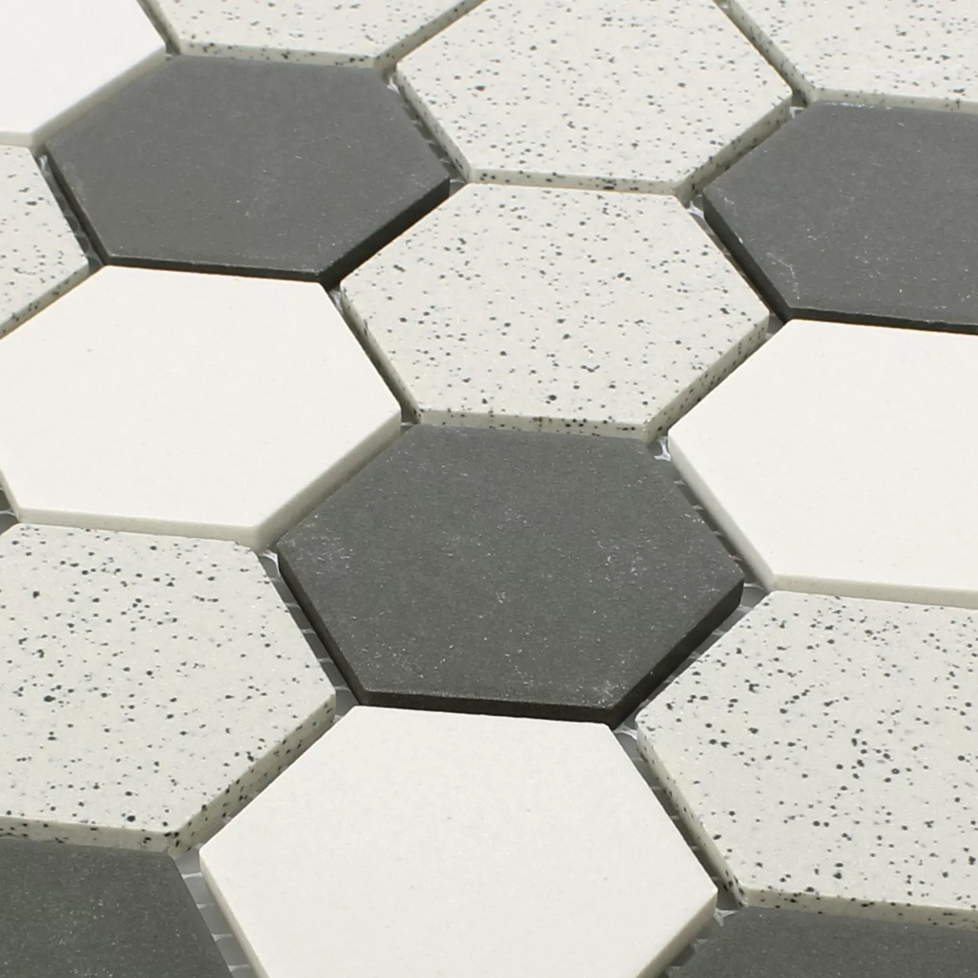 Sample Ceramic Mosaic Tiles Monforte Hexagon Black Grey
