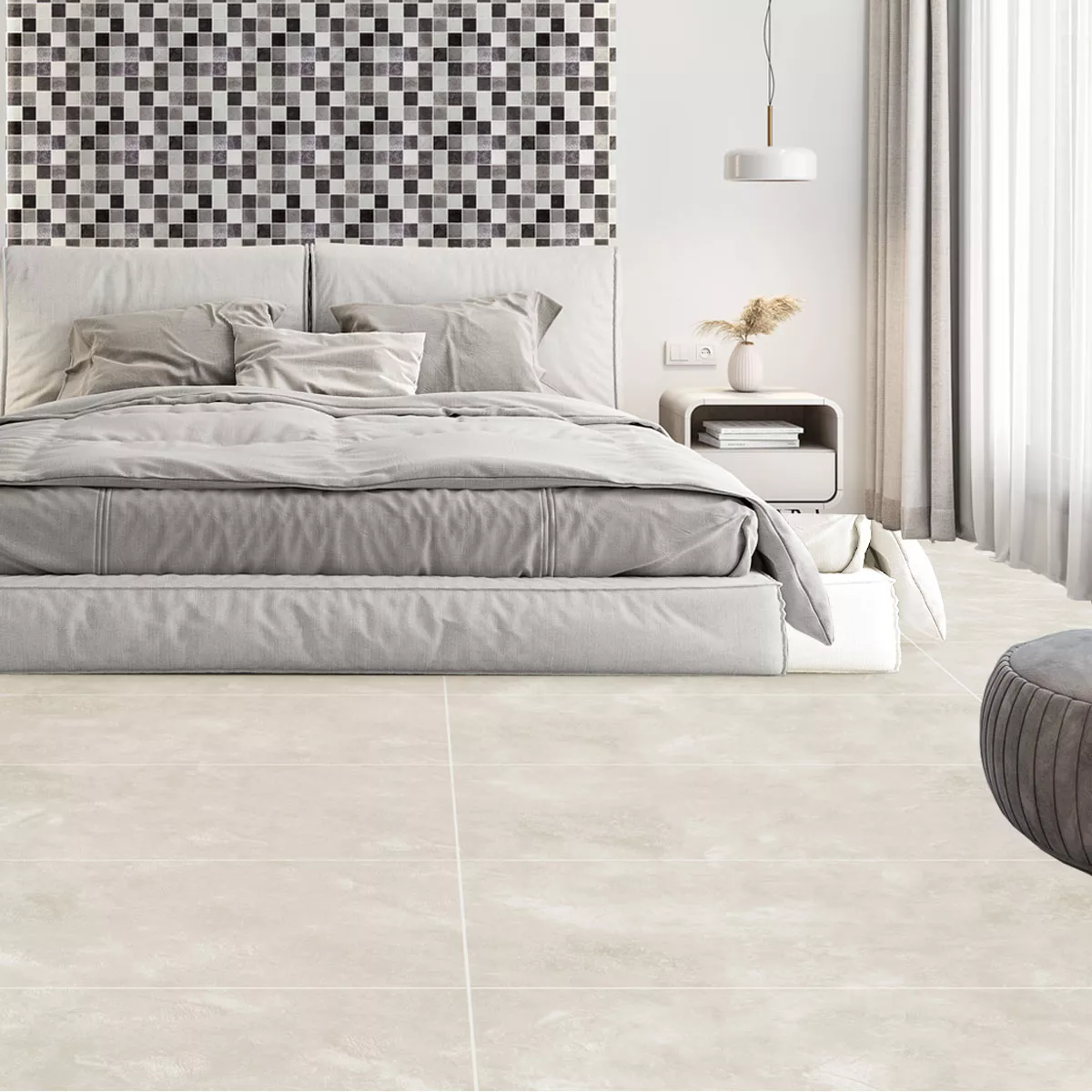 Verleihen Sie Ihrem Zuhause einen modernen Touch mit unseren Cortina Bodenfliesen in matter Betonoptik. Diese quadratischen 60x60cm Fliesen in einem warmen Cremeton vereinen zeitloses Design mit praktischer Funktionalität.