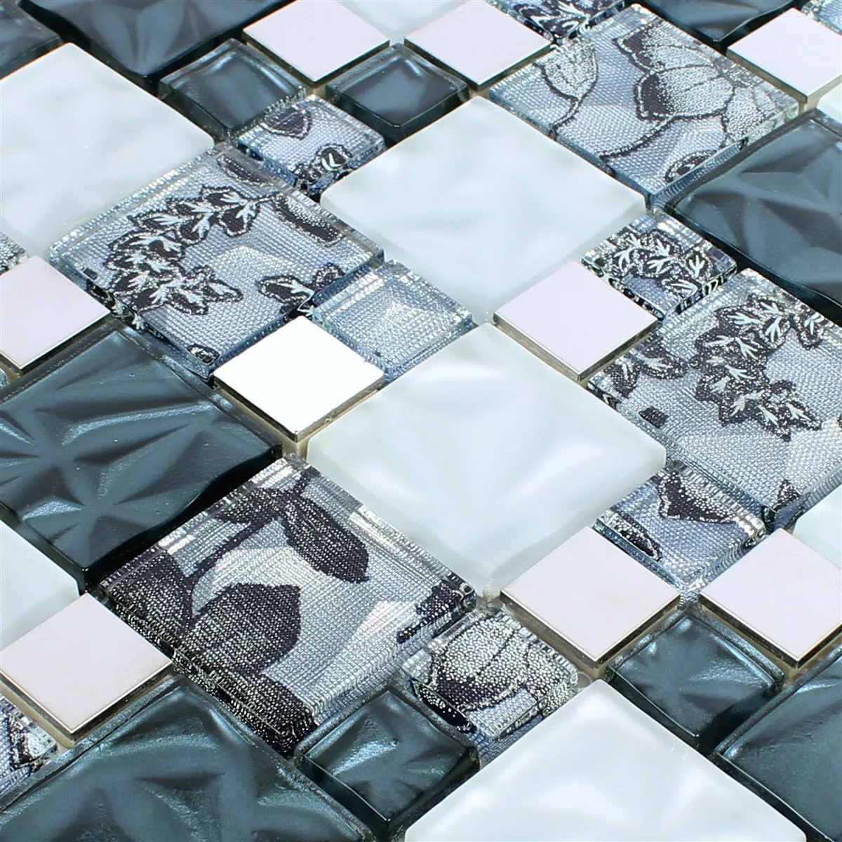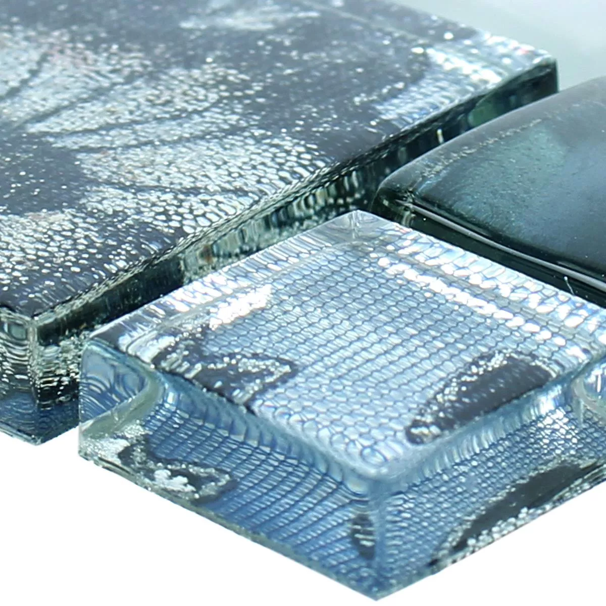 Sample Glas Metall Stainless Steel Mosaic Tiles Zadar Grey Blue