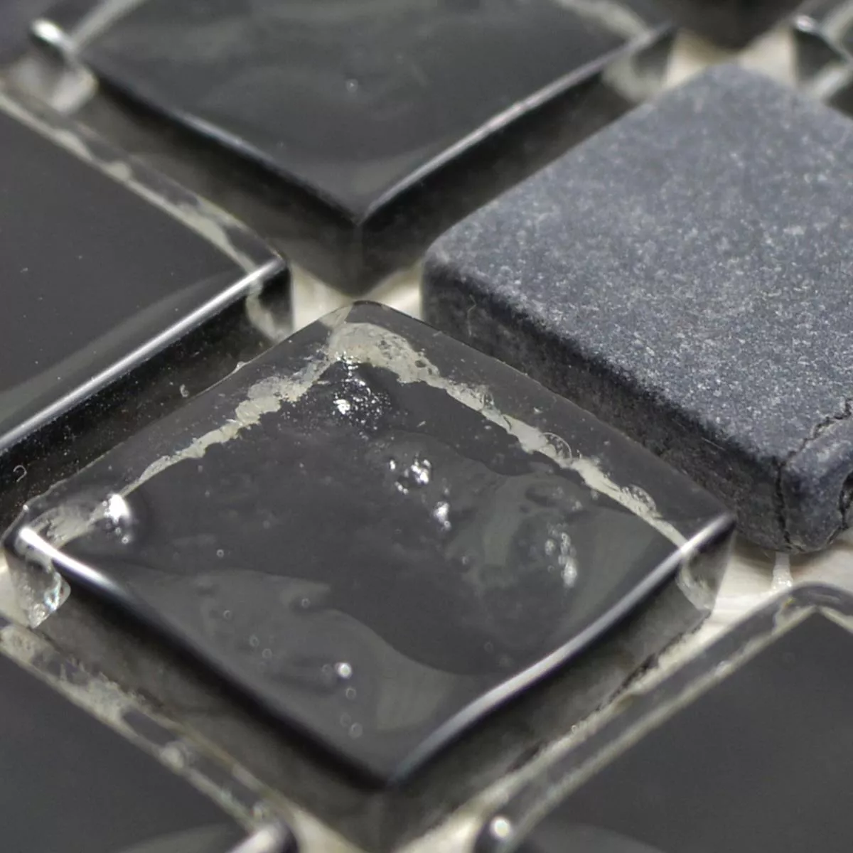 Sample Glas Natural Stone Mosaic Tiles Zekova Black Grey