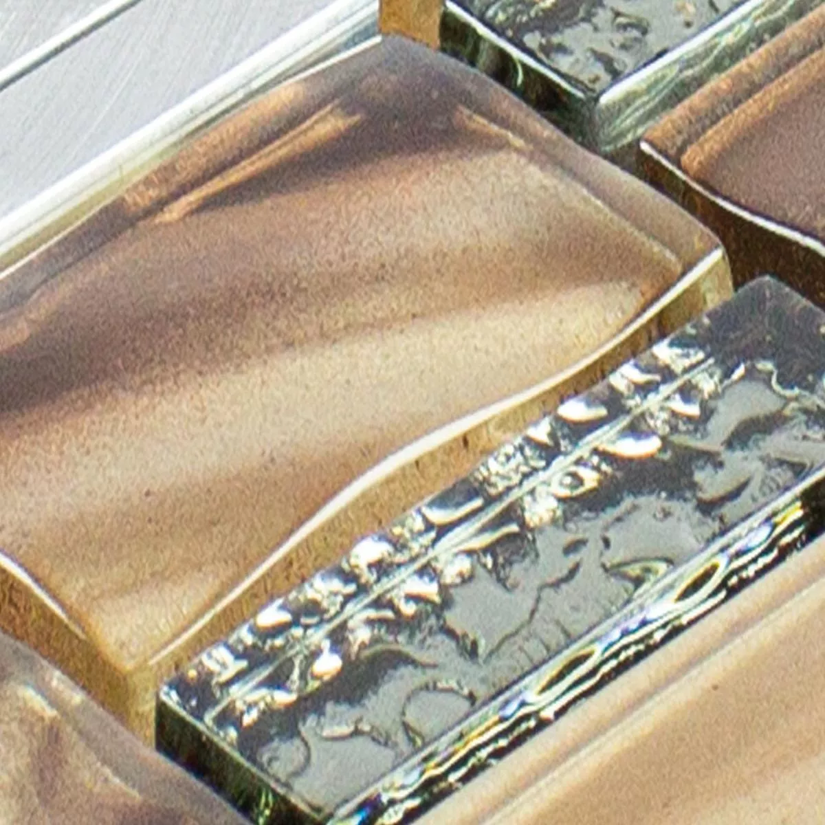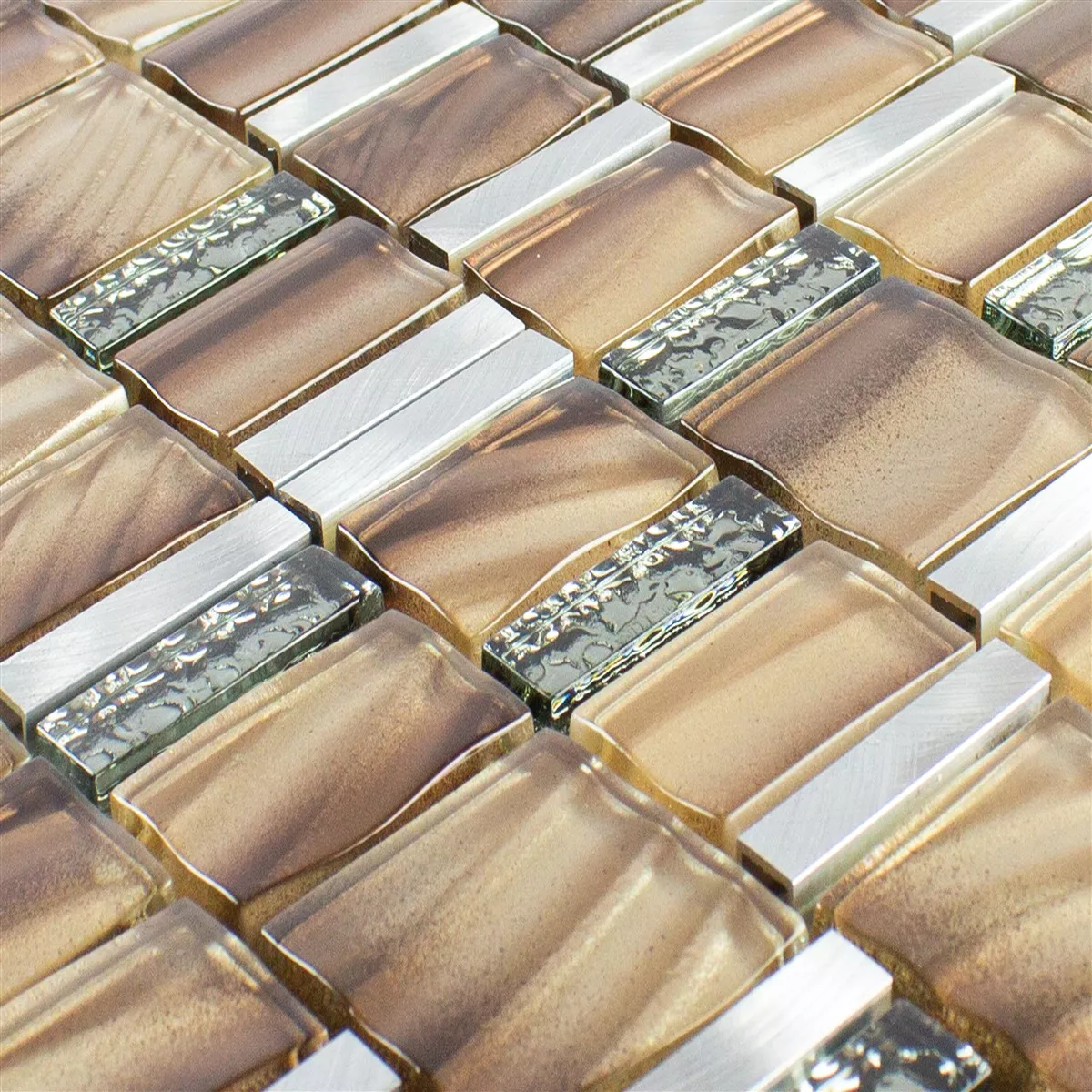 Sample Glass Metal Mosaic Tiles Union Brown Silver