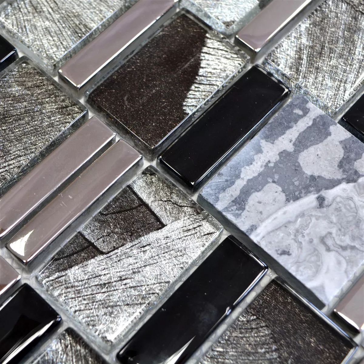 Sample Glass Mosaic Natural Stone Tiles Hummel Black Grey