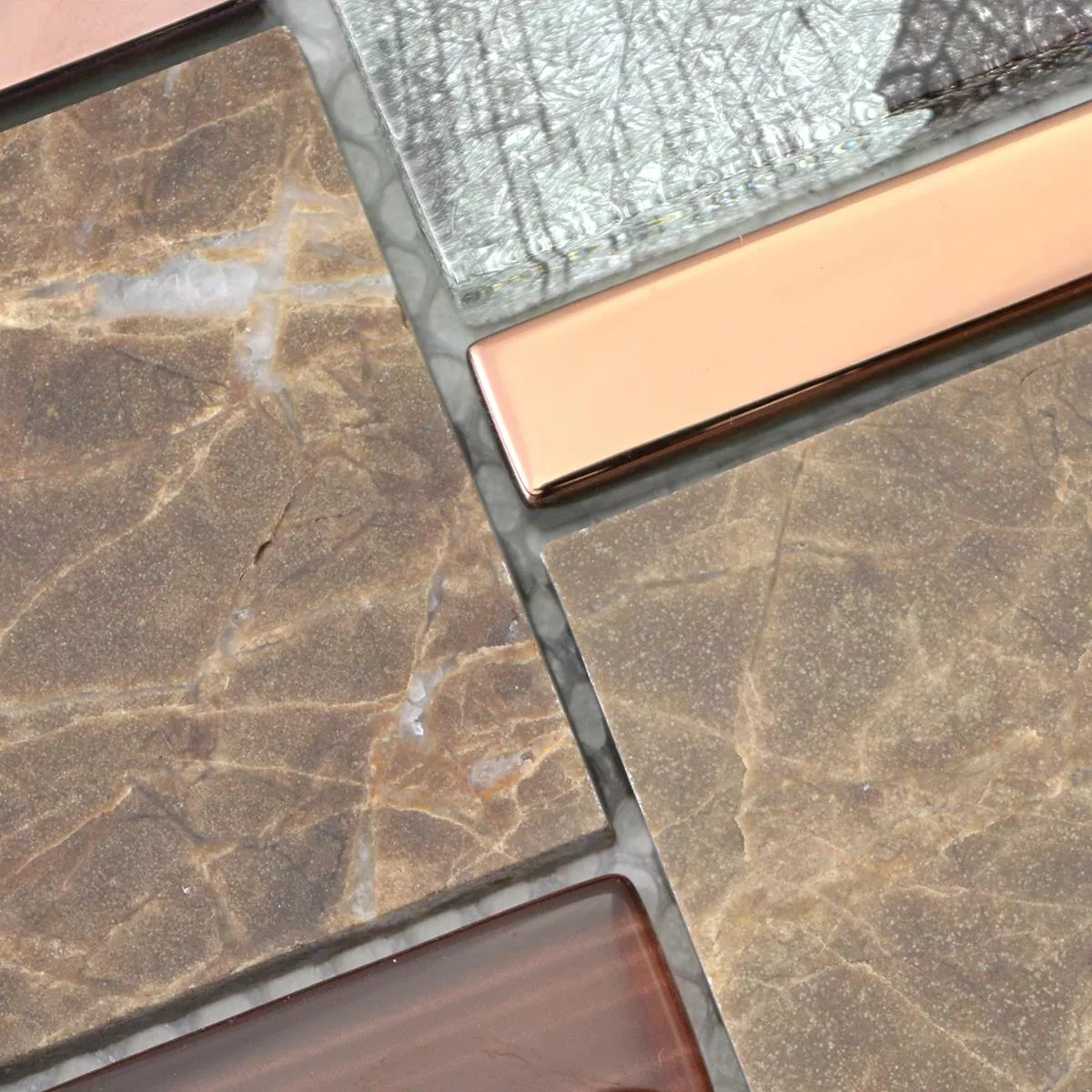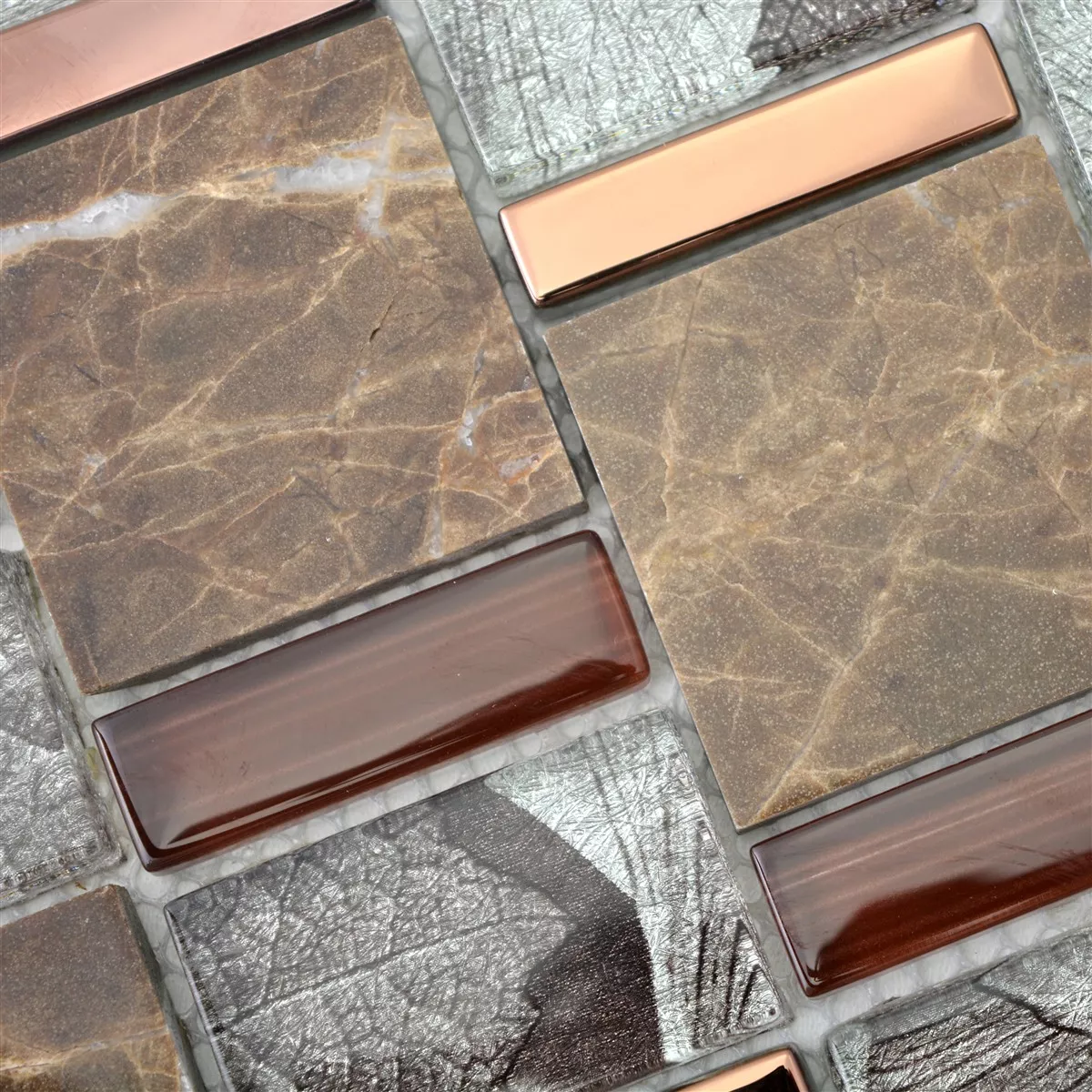 Sample Glass Mosaic Natural Stone Tiles Hummel Brown Beige
