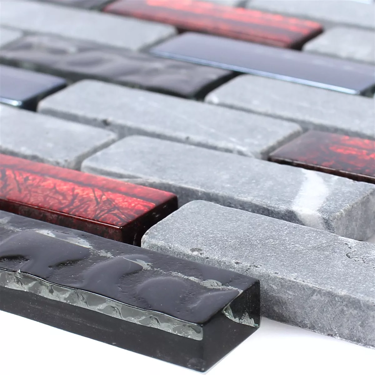 Sample Glass Mosaic Natural Stone Tiles Marley Black Red Grey