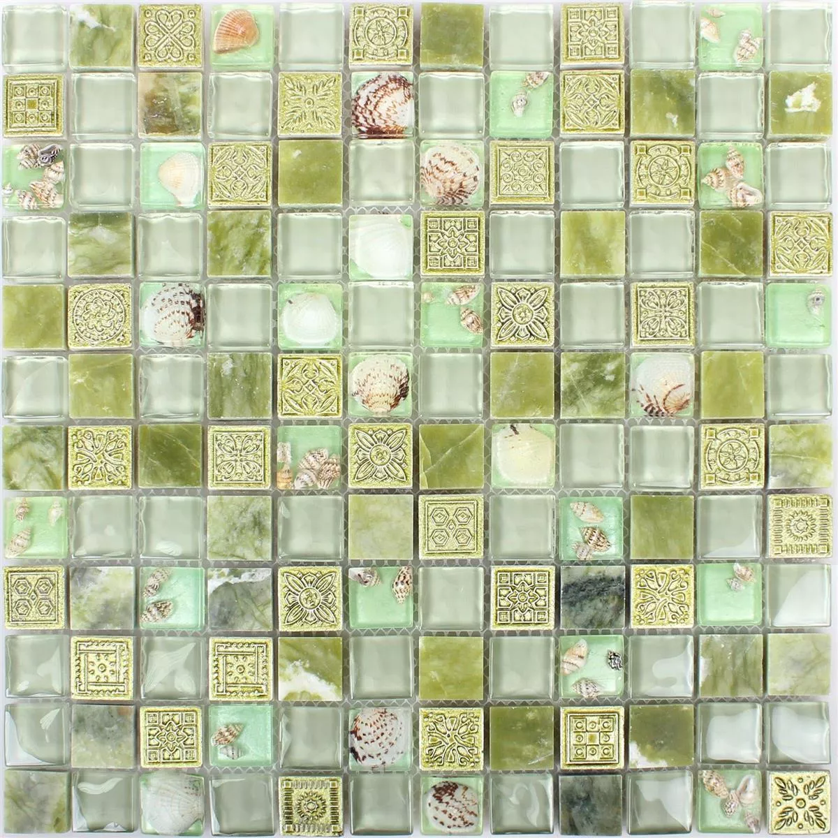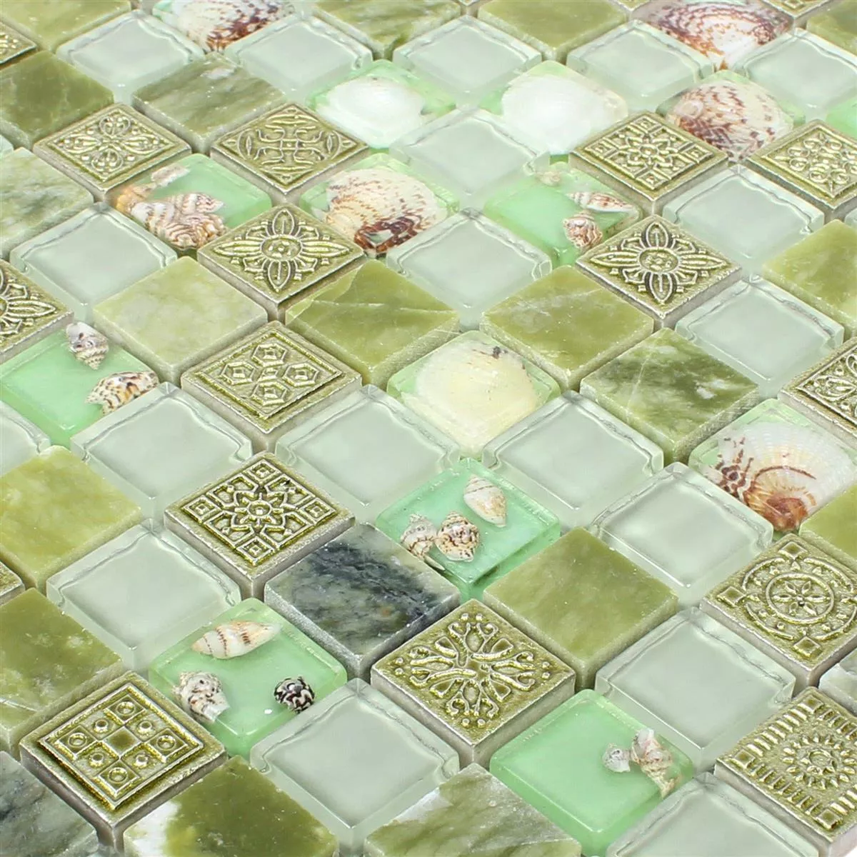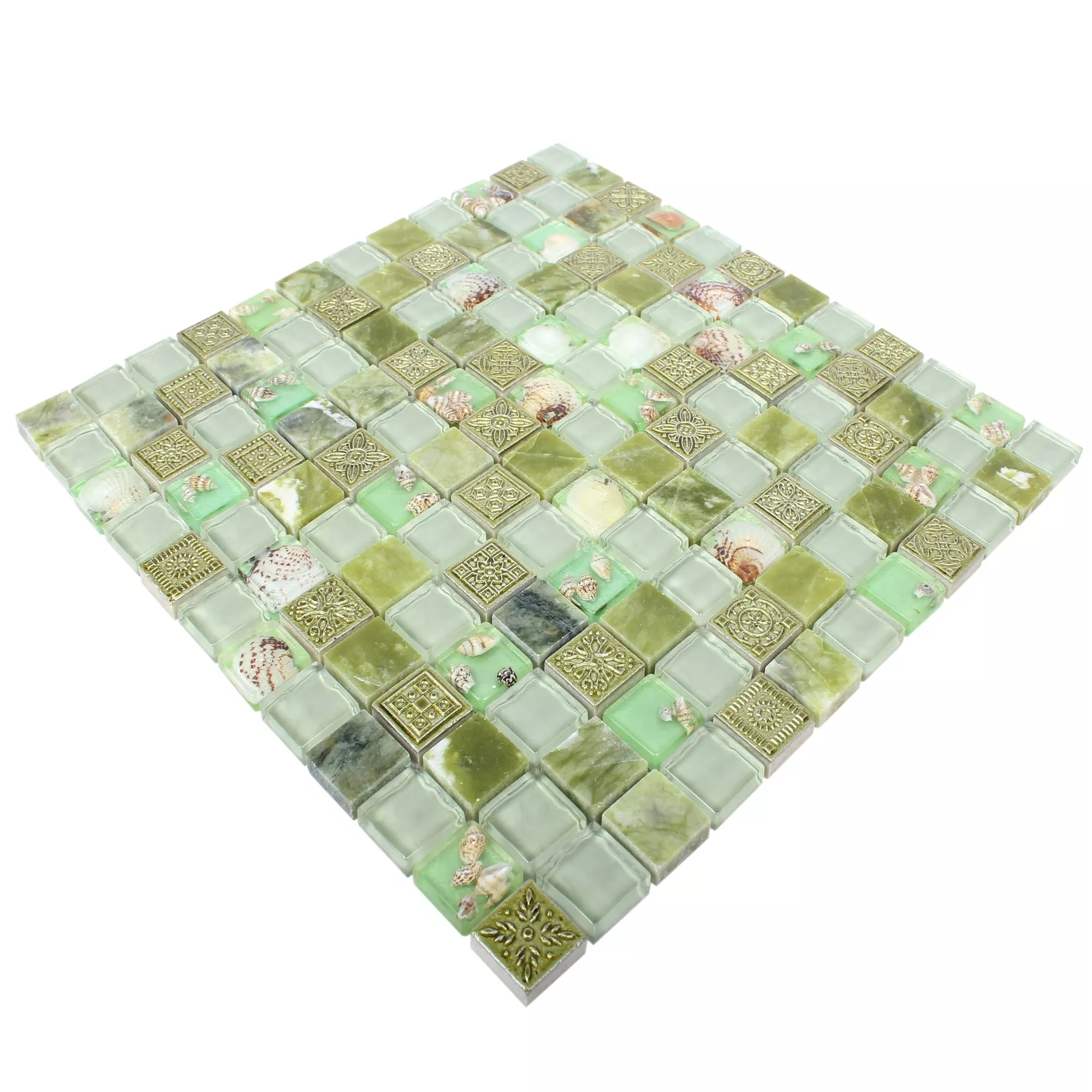 Sample Glass Mosaic Natural Stone Tiles Tatvan Shell Green