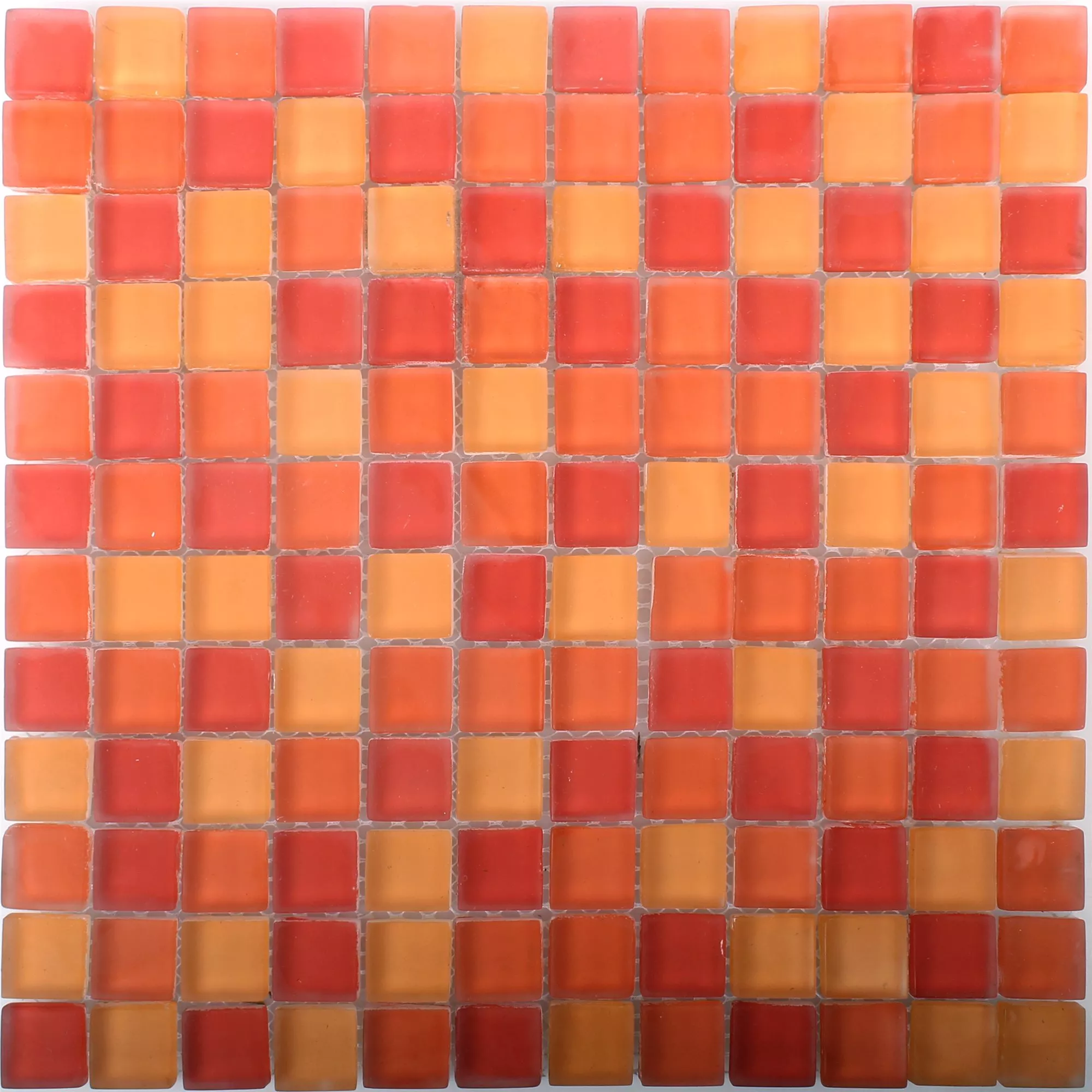 Sample Glass Mosaic Tiles Blossom Red Orange Mix Mat