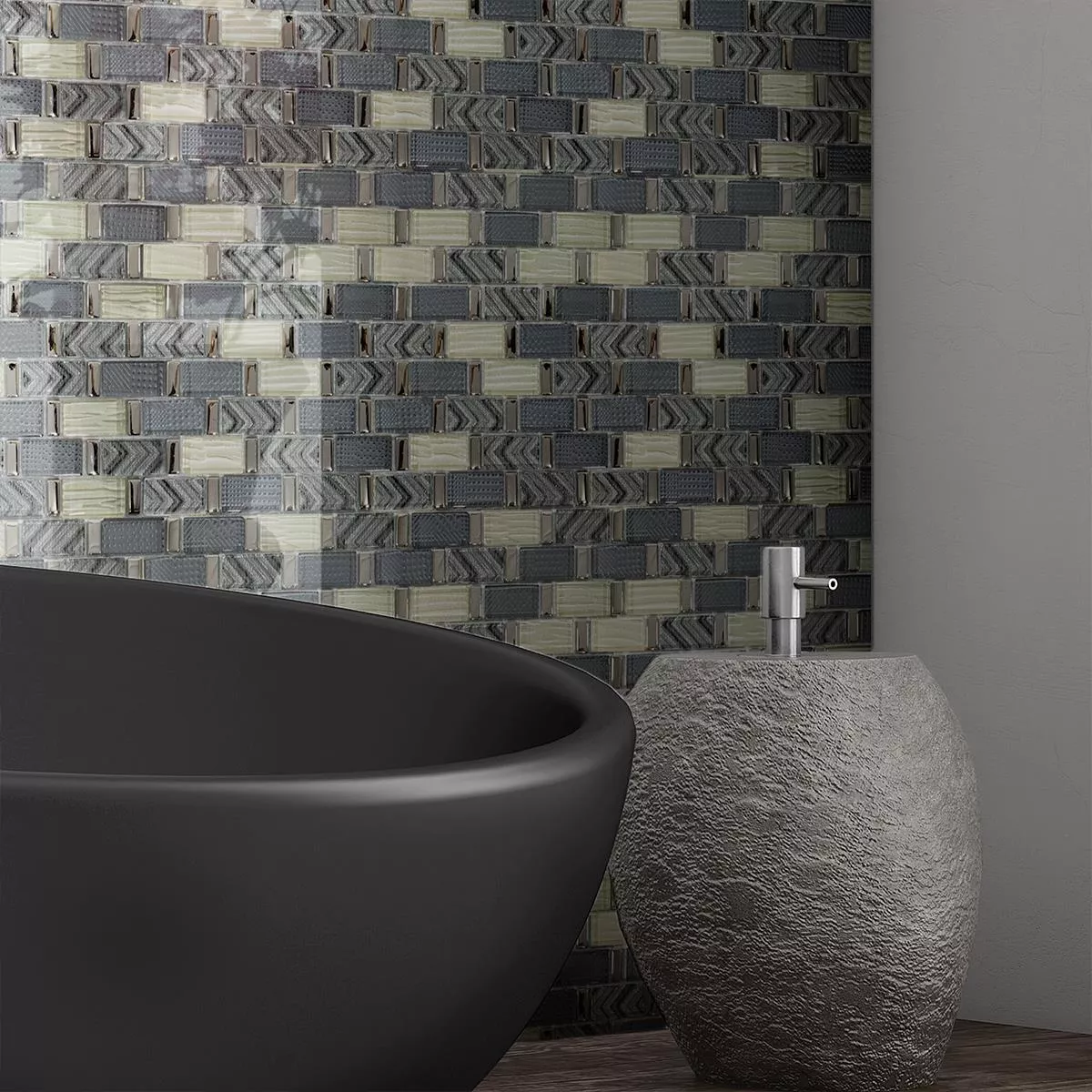 Sample Glass Mosaic Tiles Buenos Aires Grey Beige Mix
