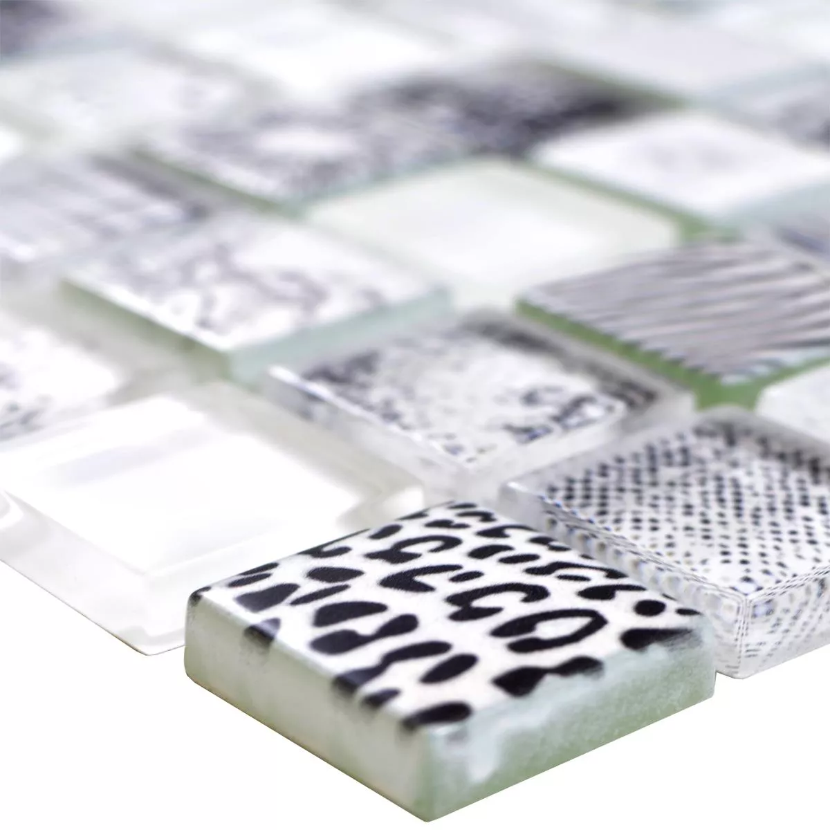 Sample Glass Mosaic Tiles Cornelia Retro Optic Super White