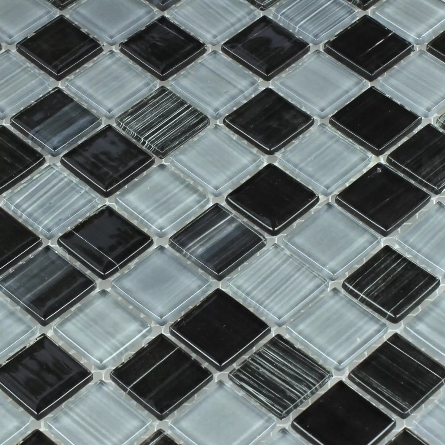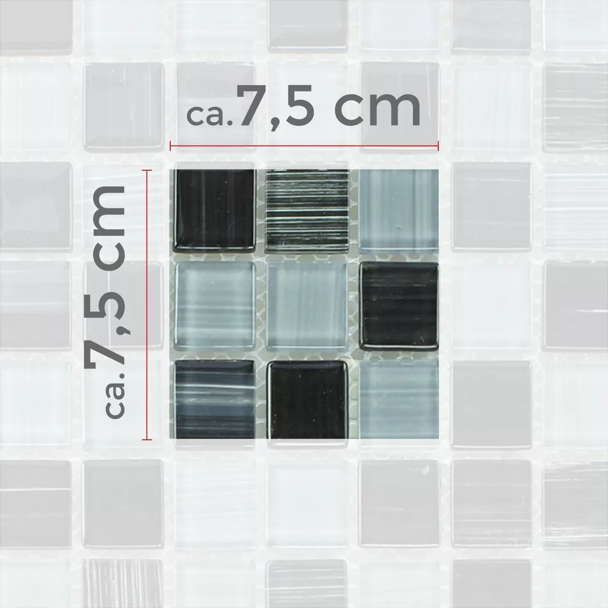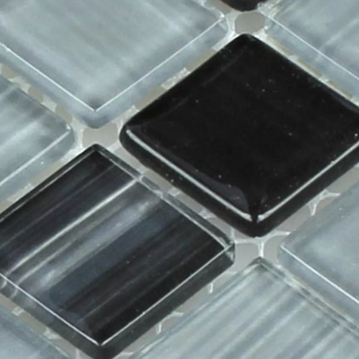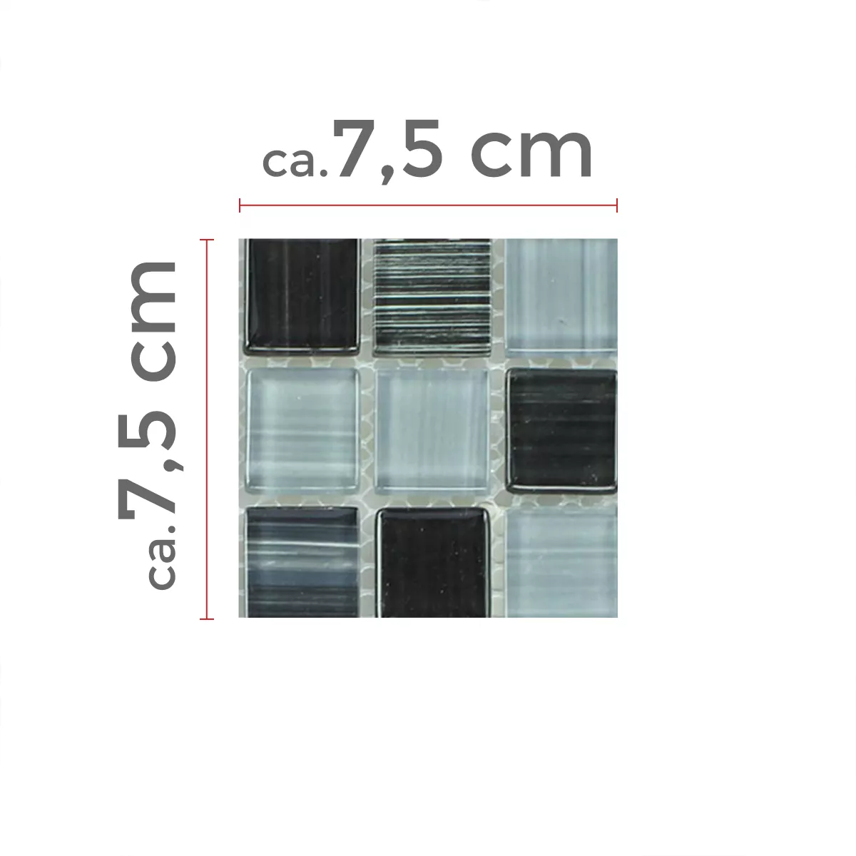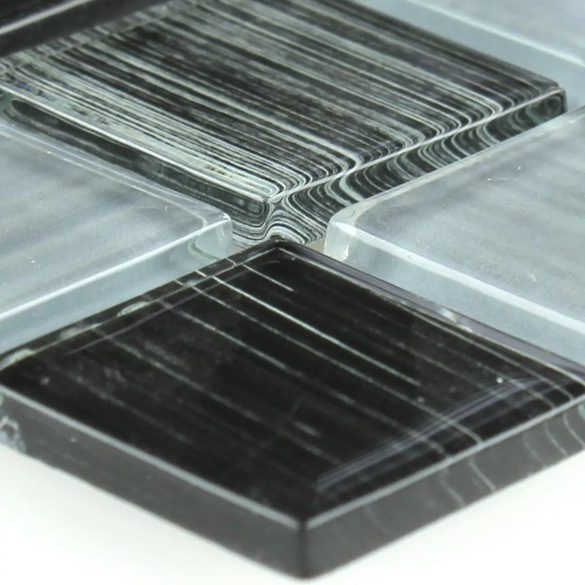 Sample Glass Mosaic Tiles Lafayette Black Grey Striped