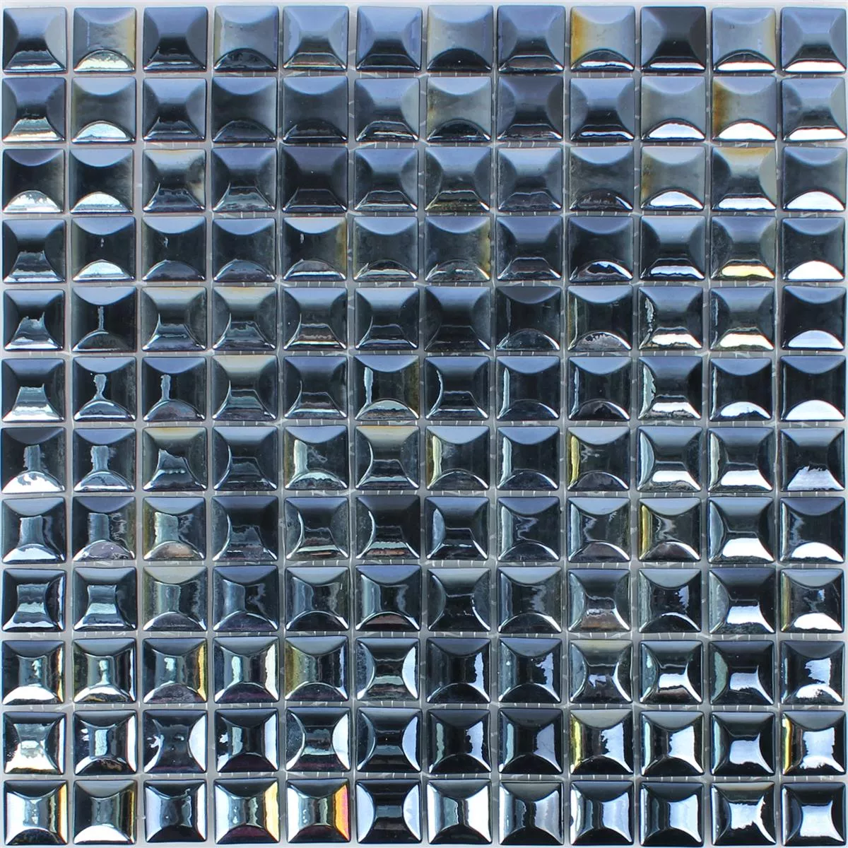 Sample Glass Mosaic Tiles Monrovia Black 3D Metallic