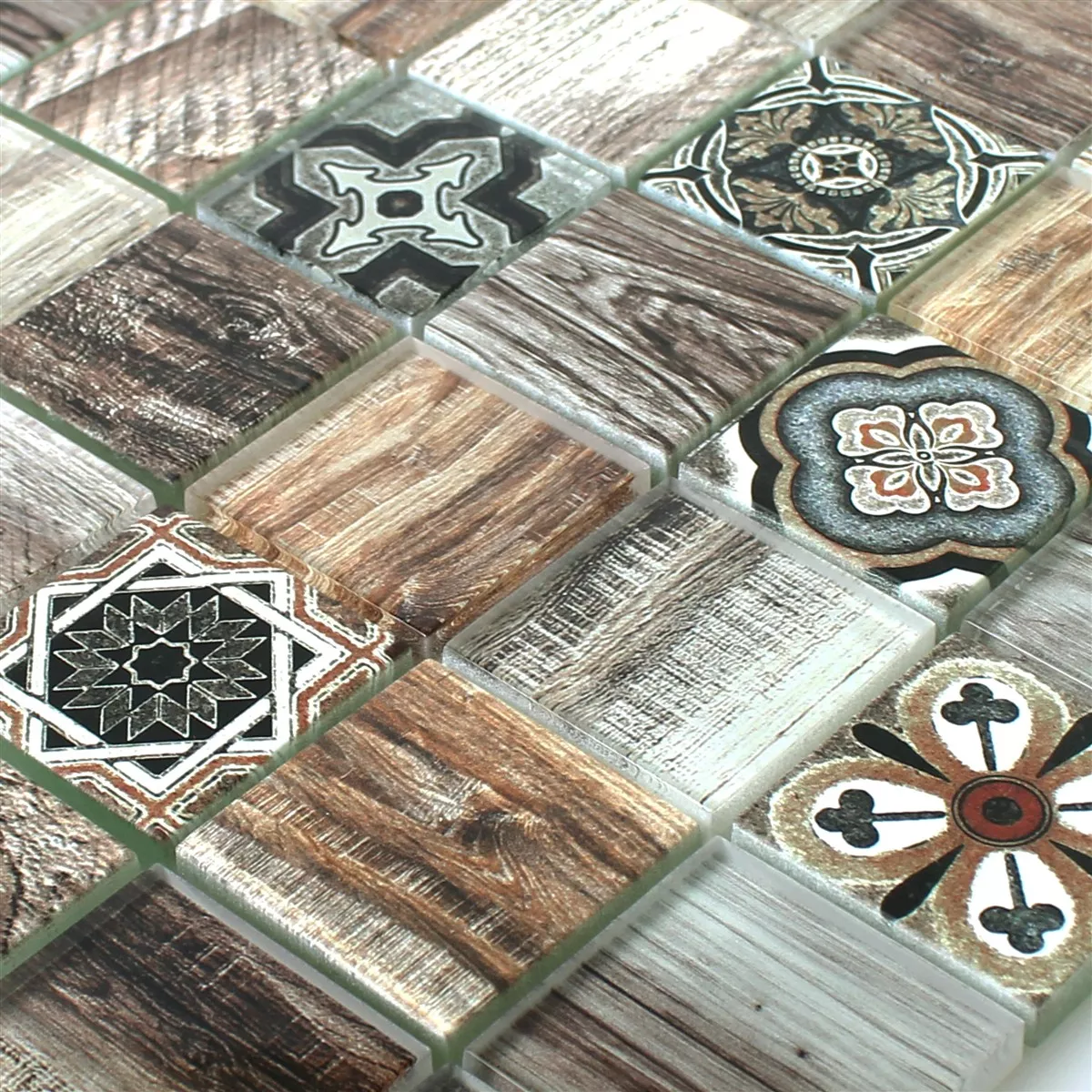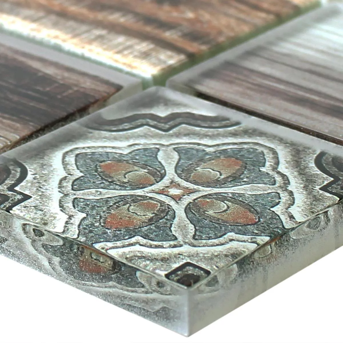 Sample Glass Mosaic Tiles Wood Optic Makarska Brown