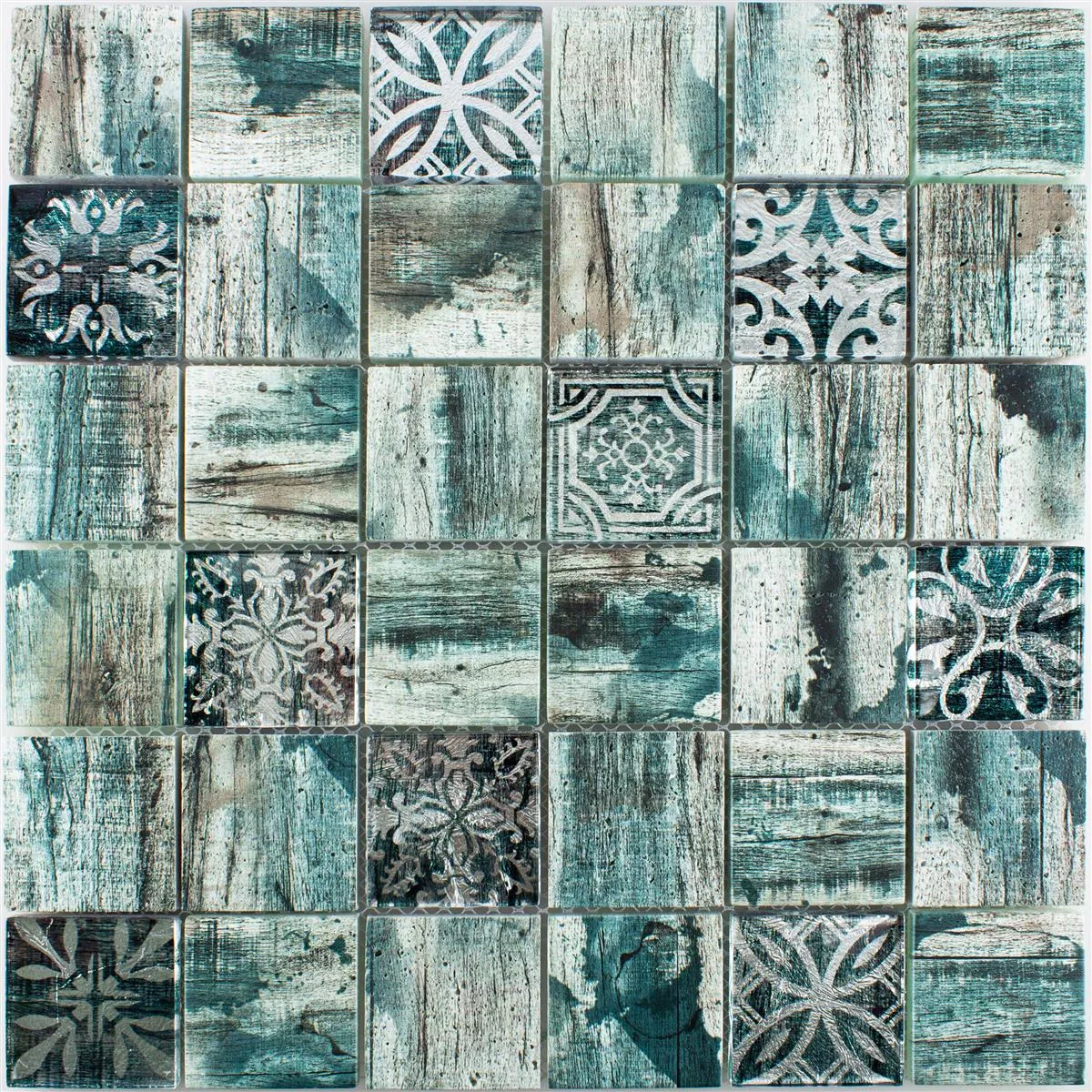Sample Glass Mosaic Tiles Wood Optic Norwalk Grey Brown Green Q48
