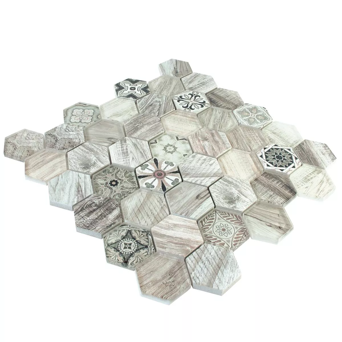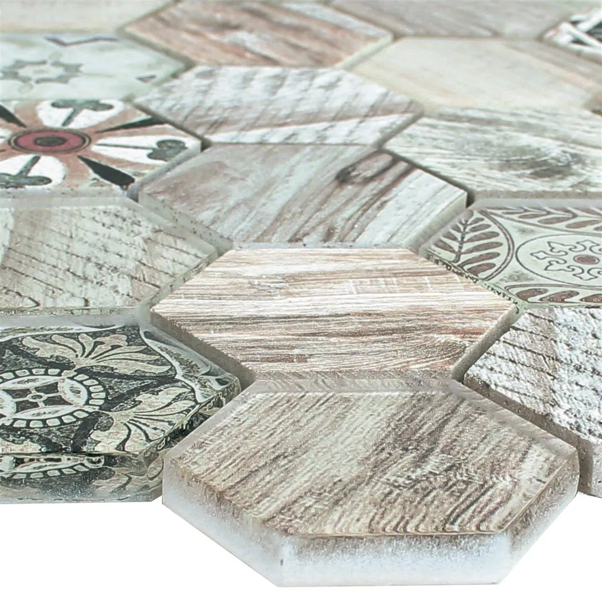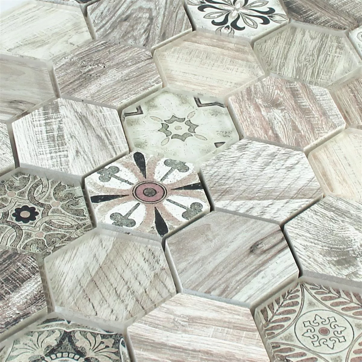 Sample Glass Natural Stone Mosaic Eritrea Wood Optic Light Brown Beige