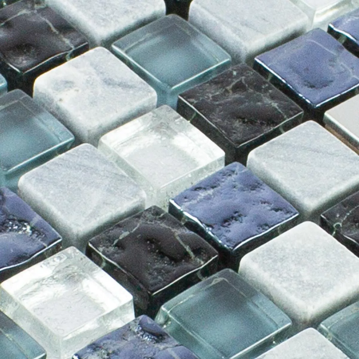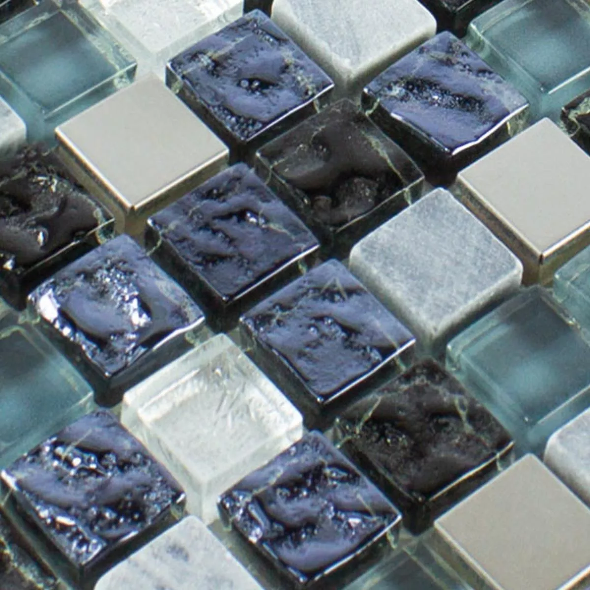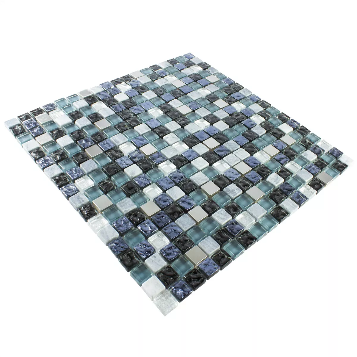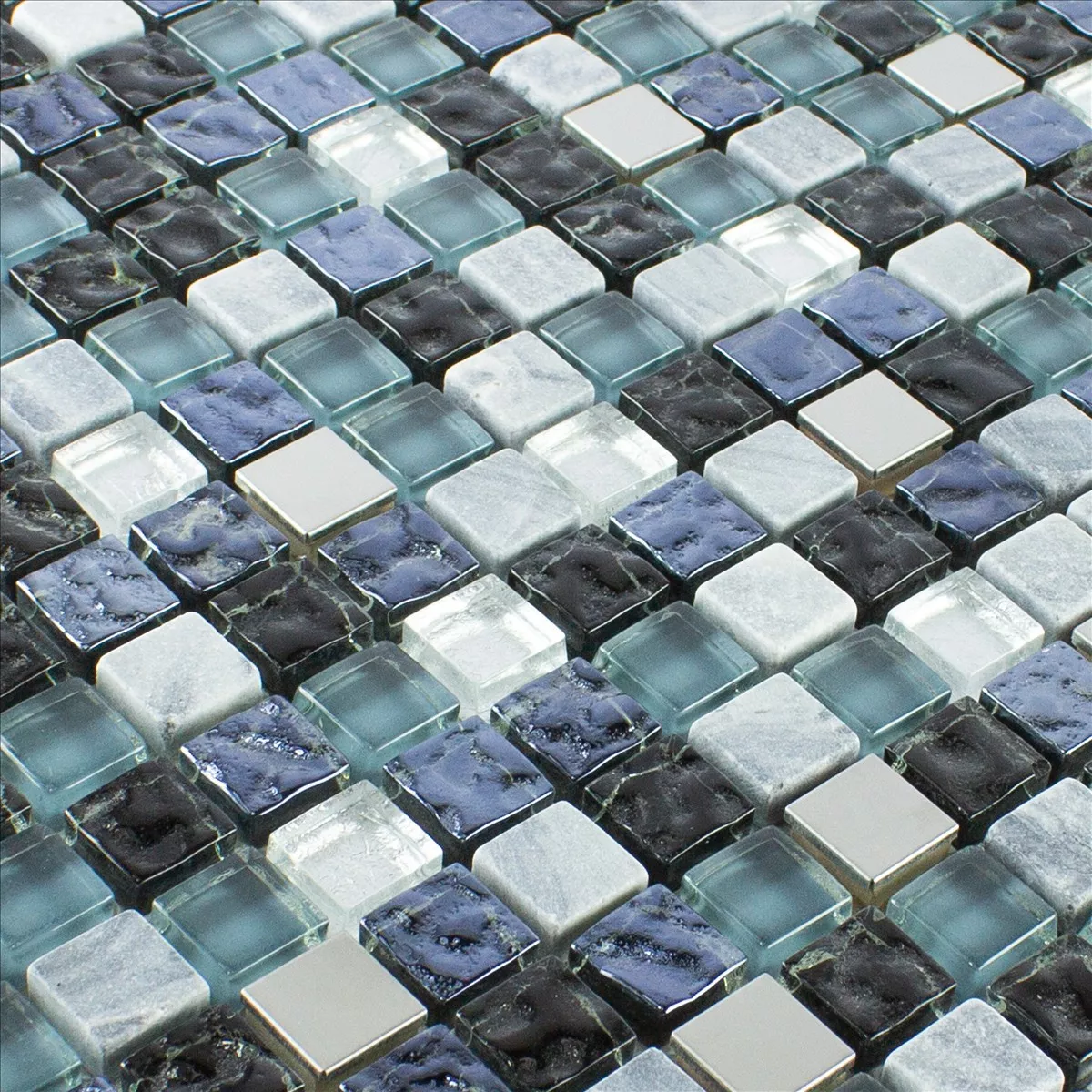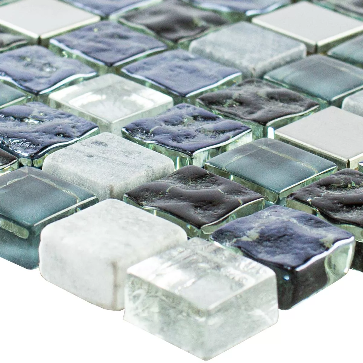 Sample Glass Natural Stone Stainless Steel Mosaic Dysart Grey Blue Silver