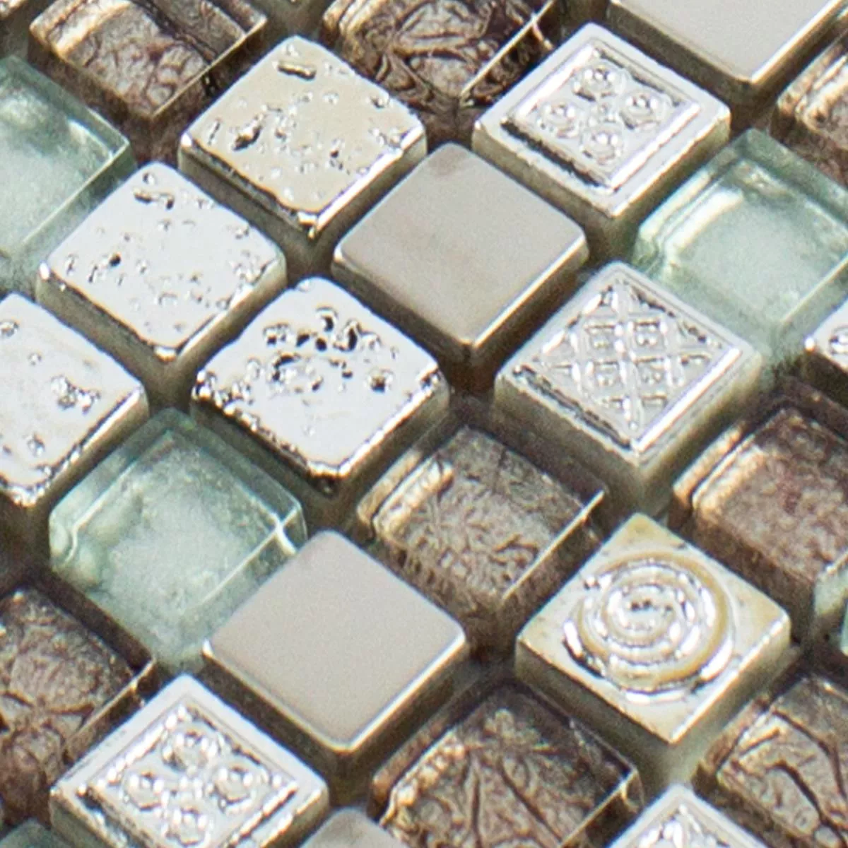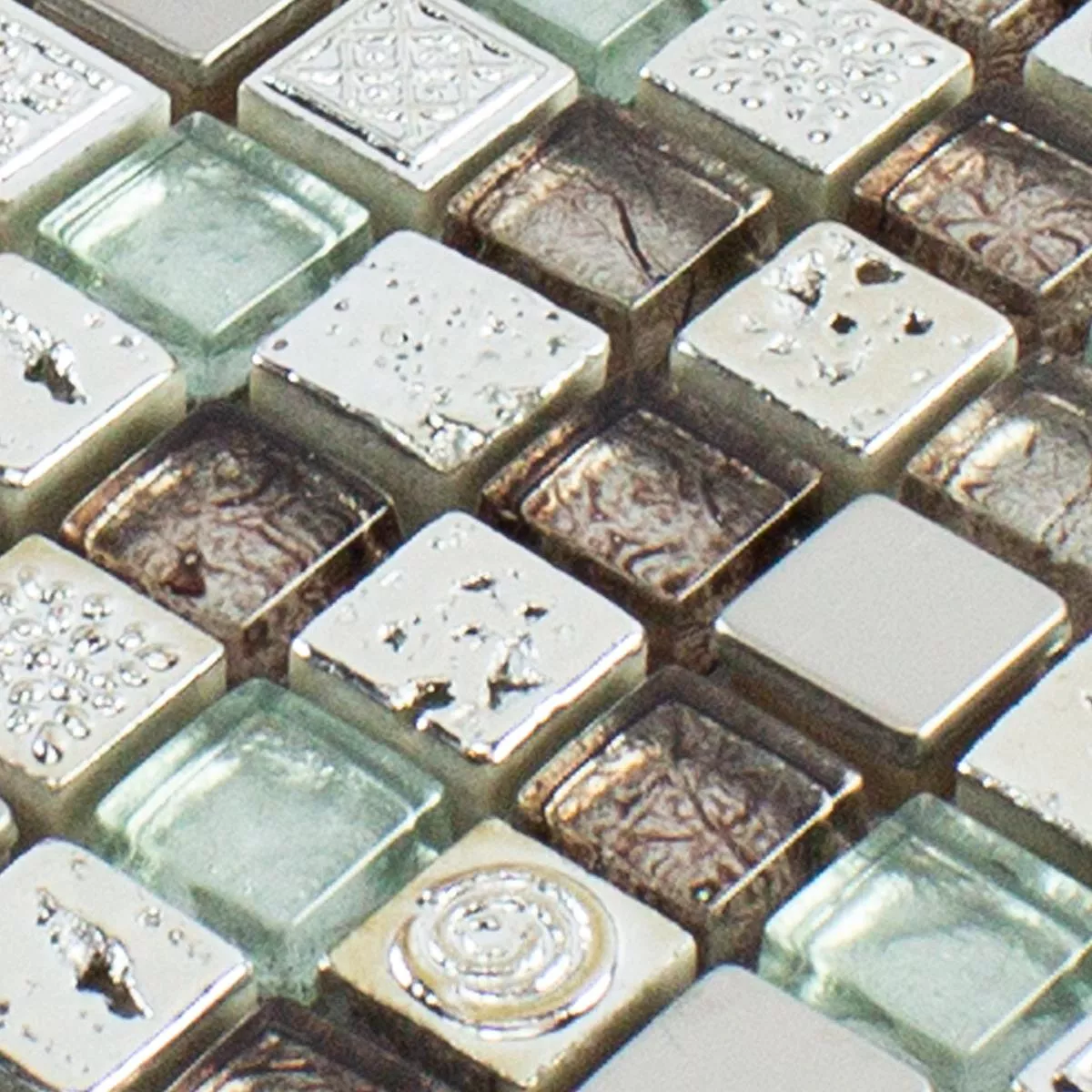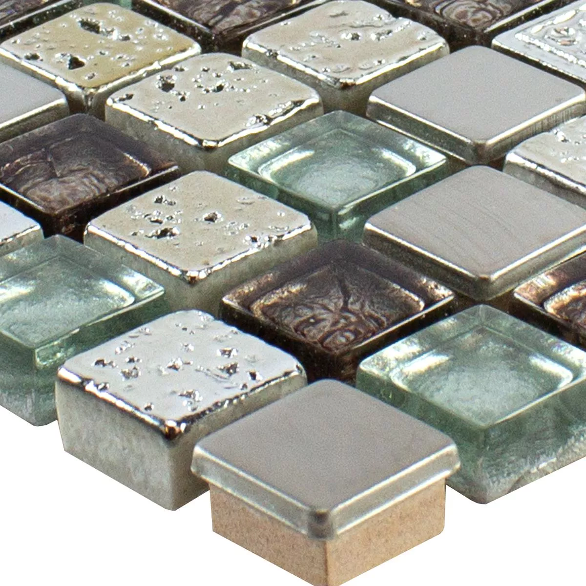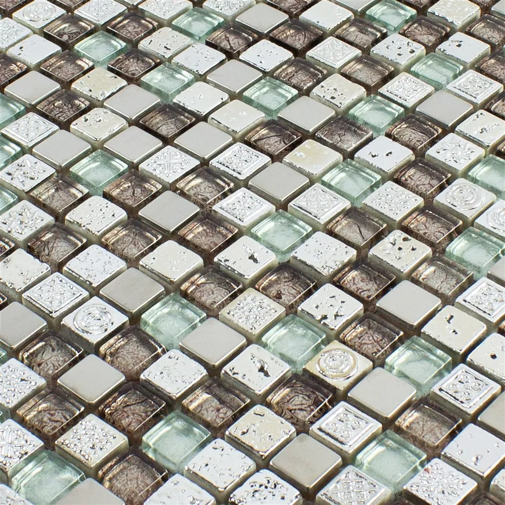 Sample Glass Resin Metal Mosaic Tile Falco Brown Silver