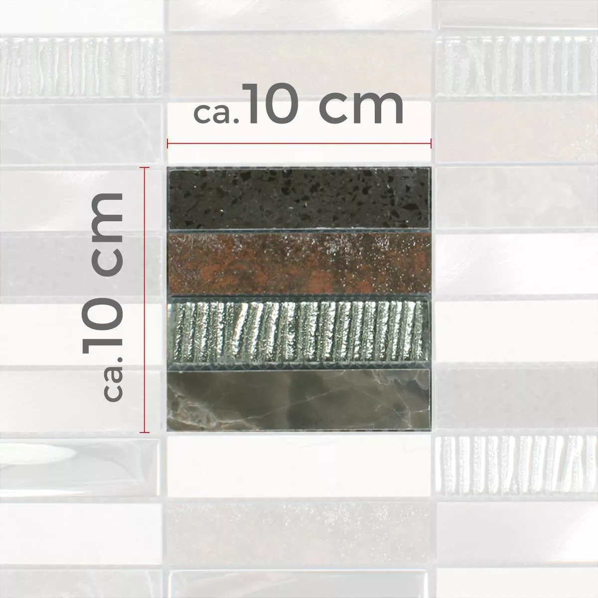 Every tile and every mosaic have different requirements for trimming, laying and und processing due to individual material characteristics and usage conditions. Please ask a local expert for correct and secure laying of your mosaics or tiles. We are not liable for unprofessional usage and faulty workmanship of constructions materials.