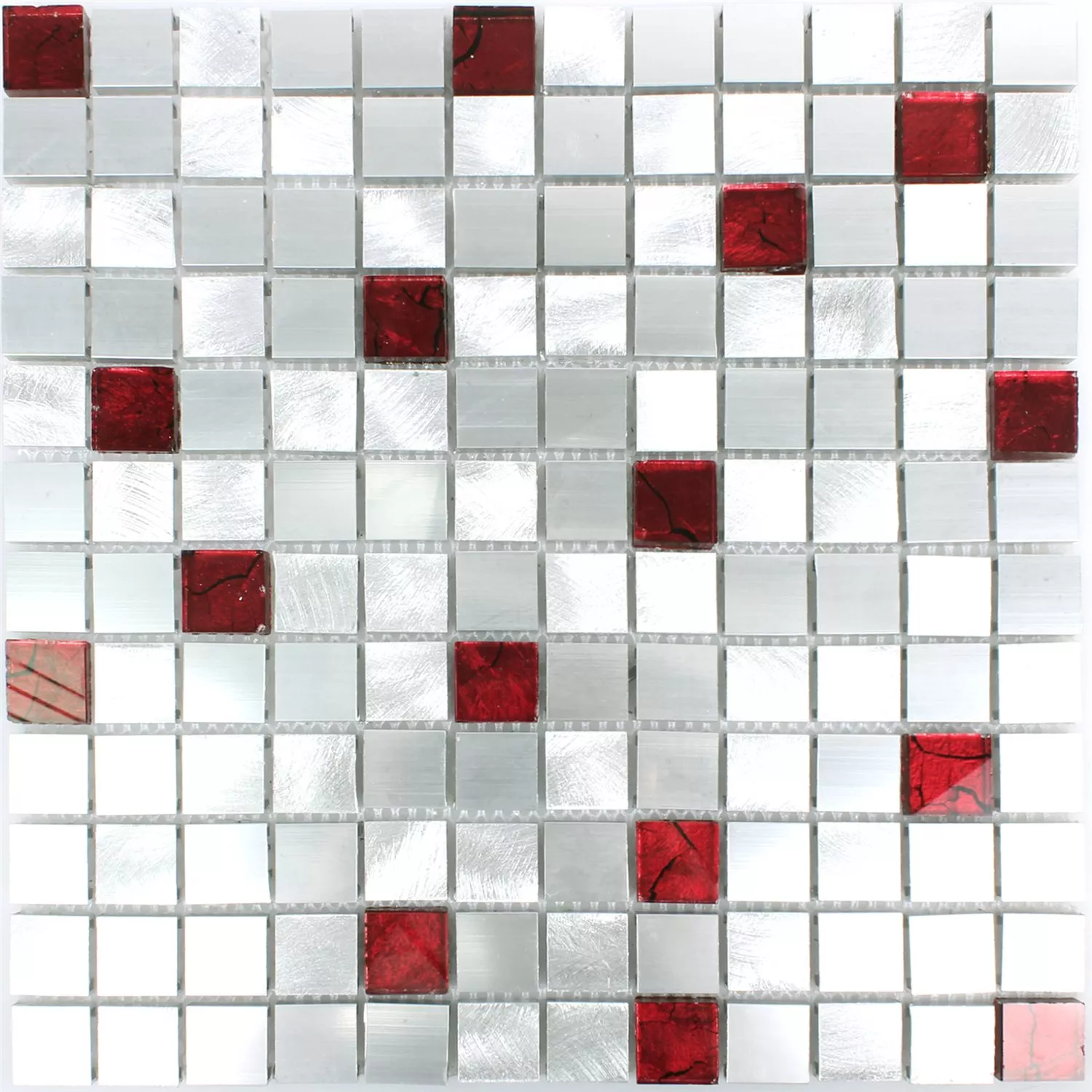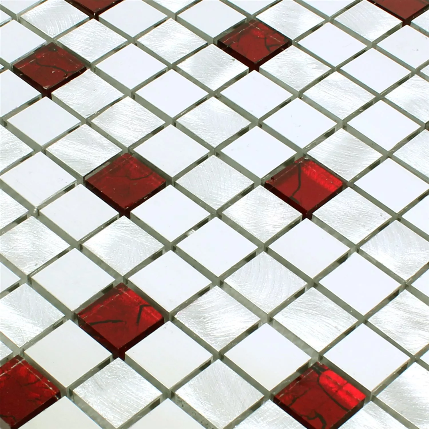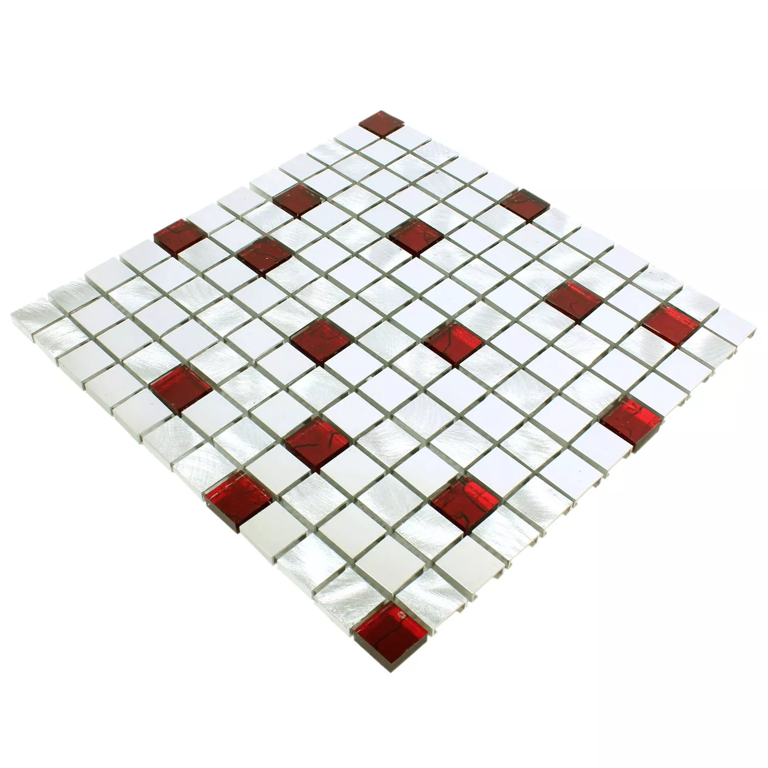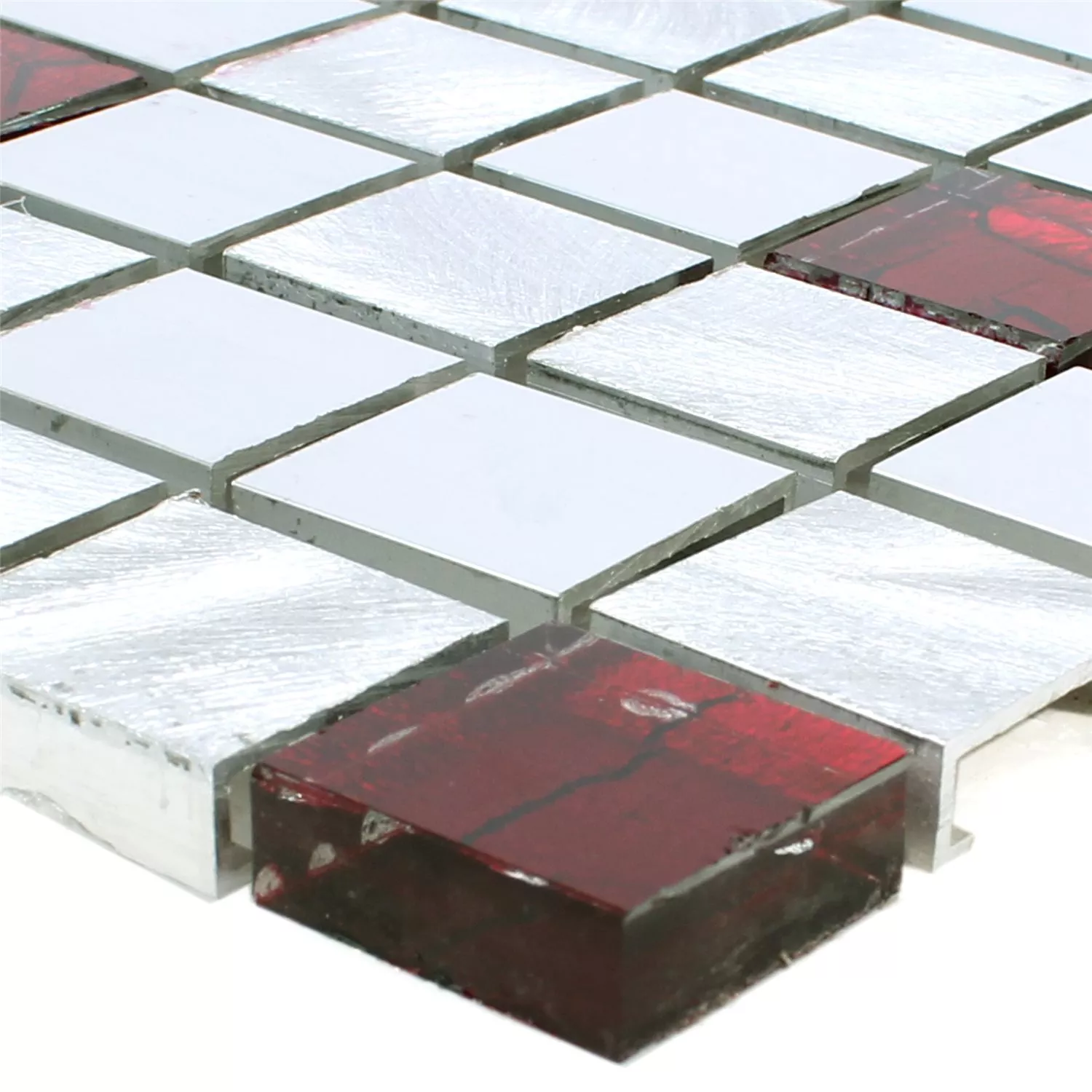 Sample Mosaic Tiles Aluminium Glass Maira Silver Red