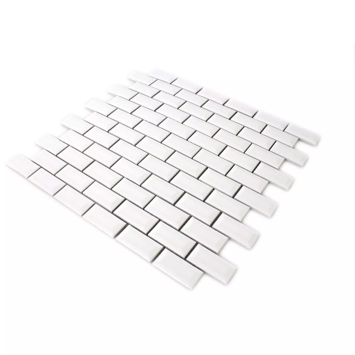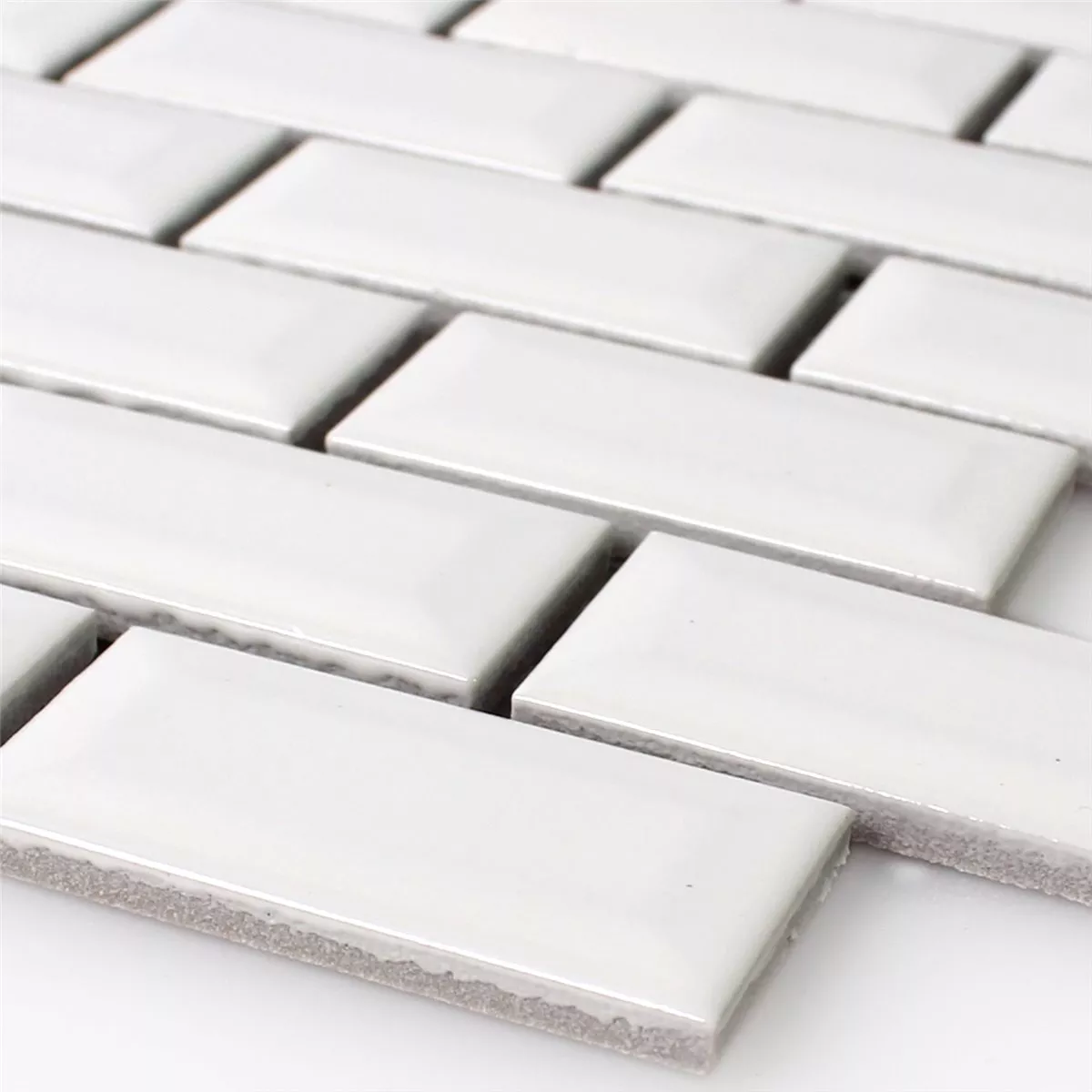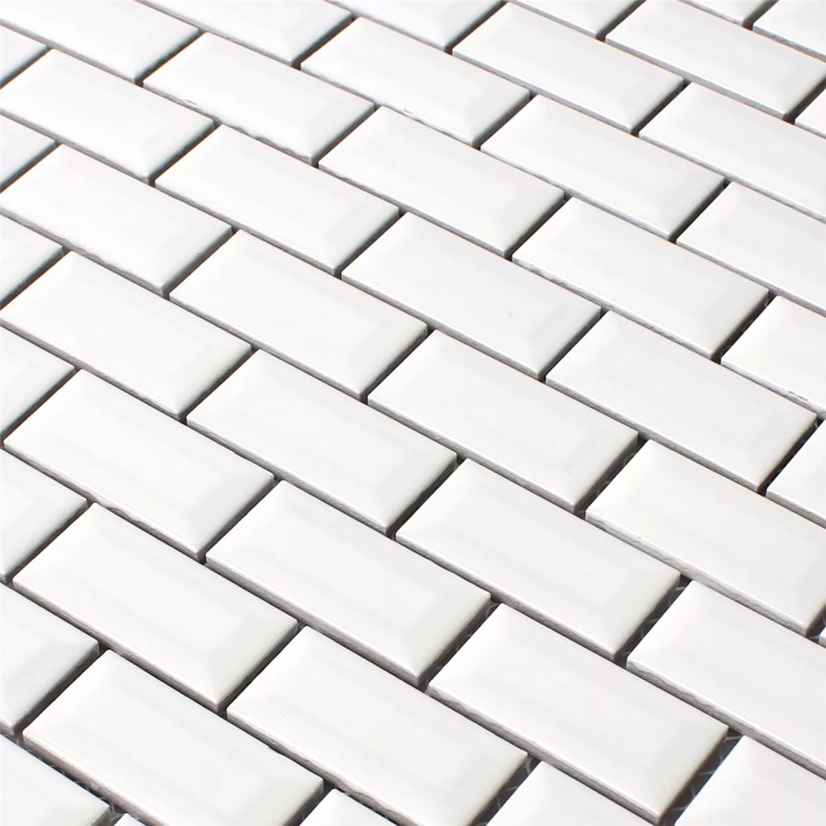 Sample Mosaic Tiles Ceramic Metro Facet White Glossy