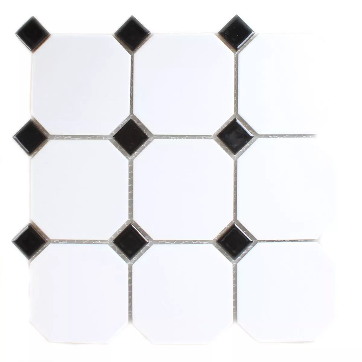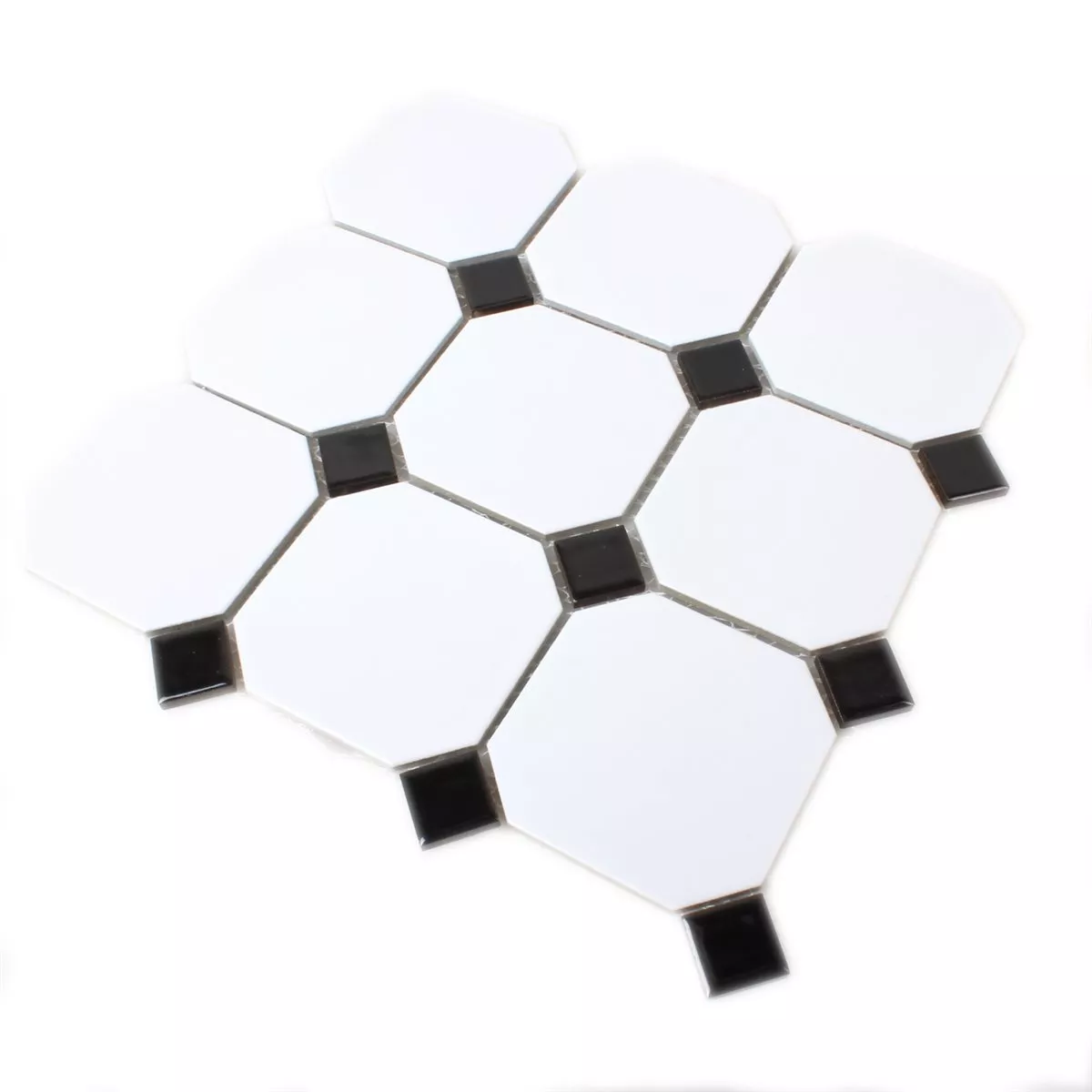 Sample Mosaic Tiles Ceramic Octagon White Black Mix