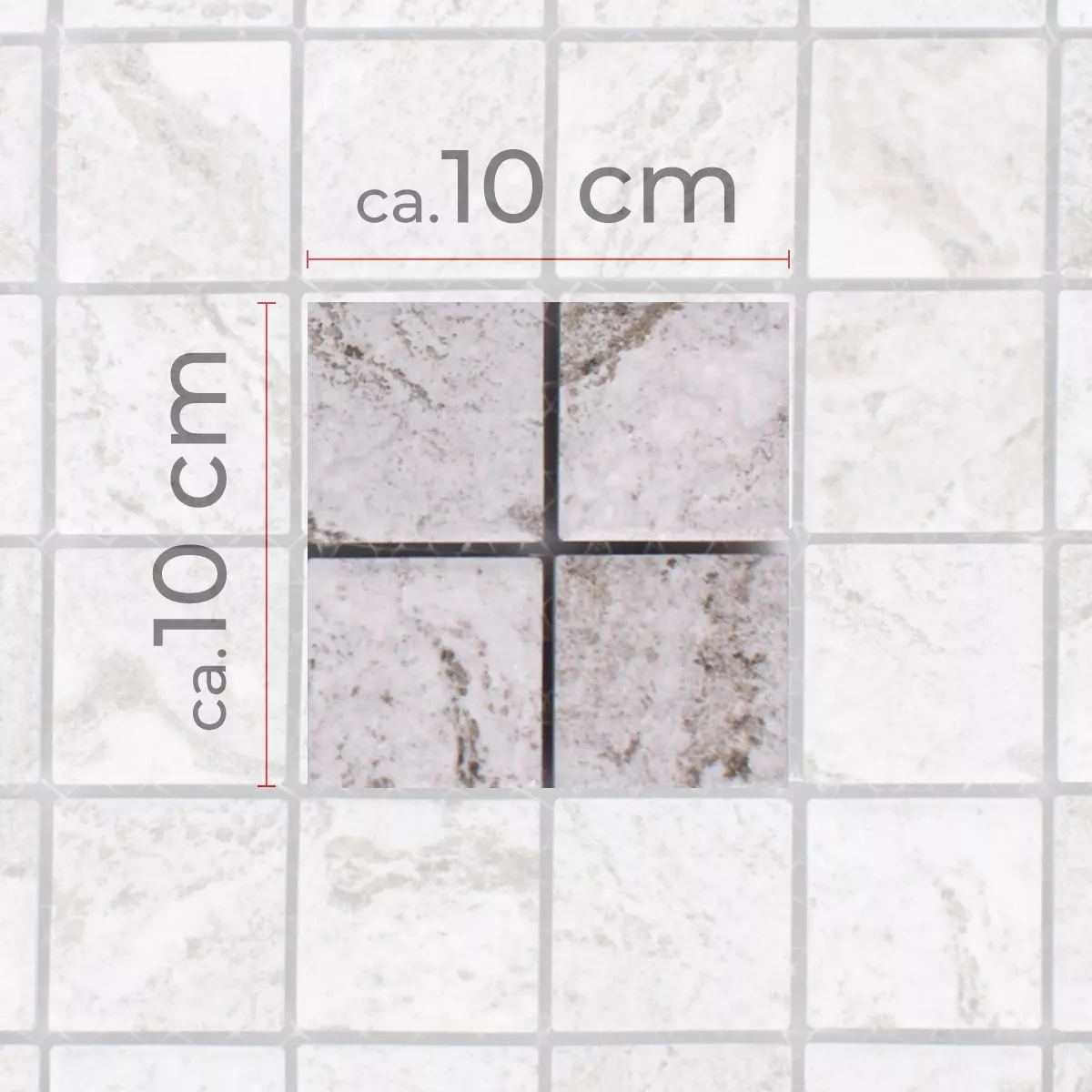 Every tile and every mosaic have different requirements for trimming, laying and und processing due to individual material characteristics and usage conditions. Please ask a local expert for correct and secure laying of your mosaics or tiles. We are not liable for unprofessional usage and faulty workmanship of constructions materials.