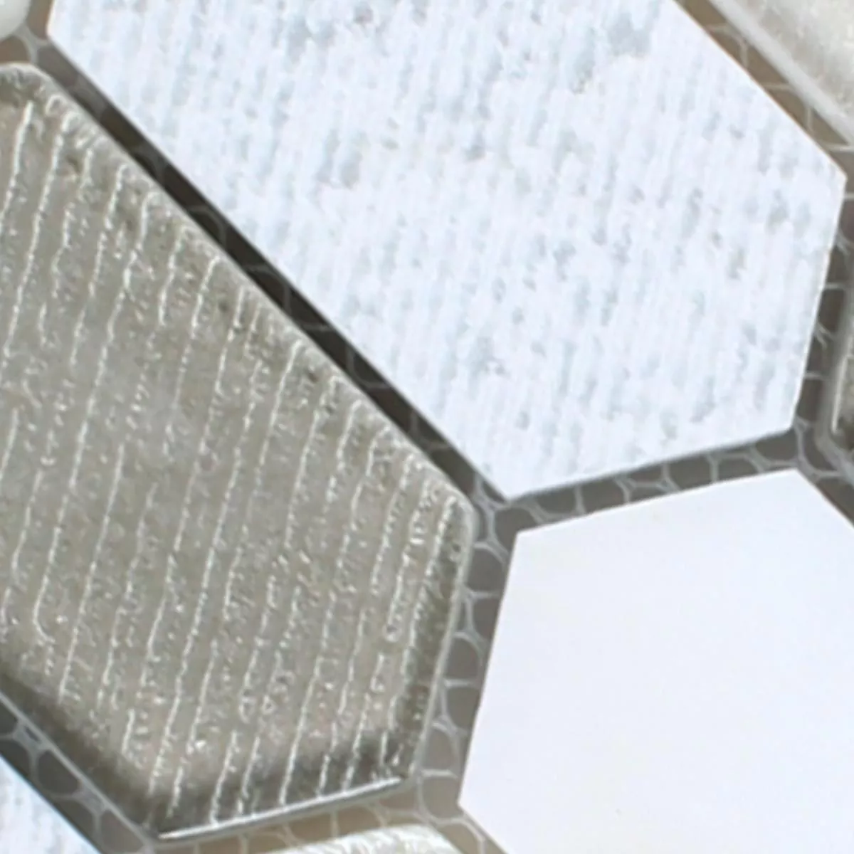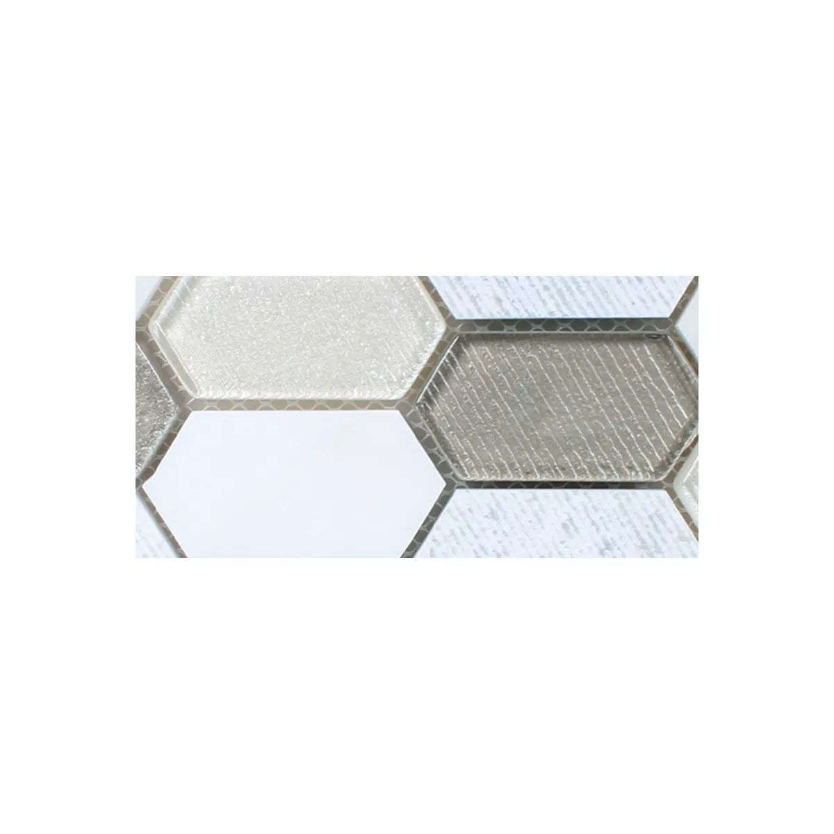Sample Mosaic Tiles Februata Hexagon White Beige Grey