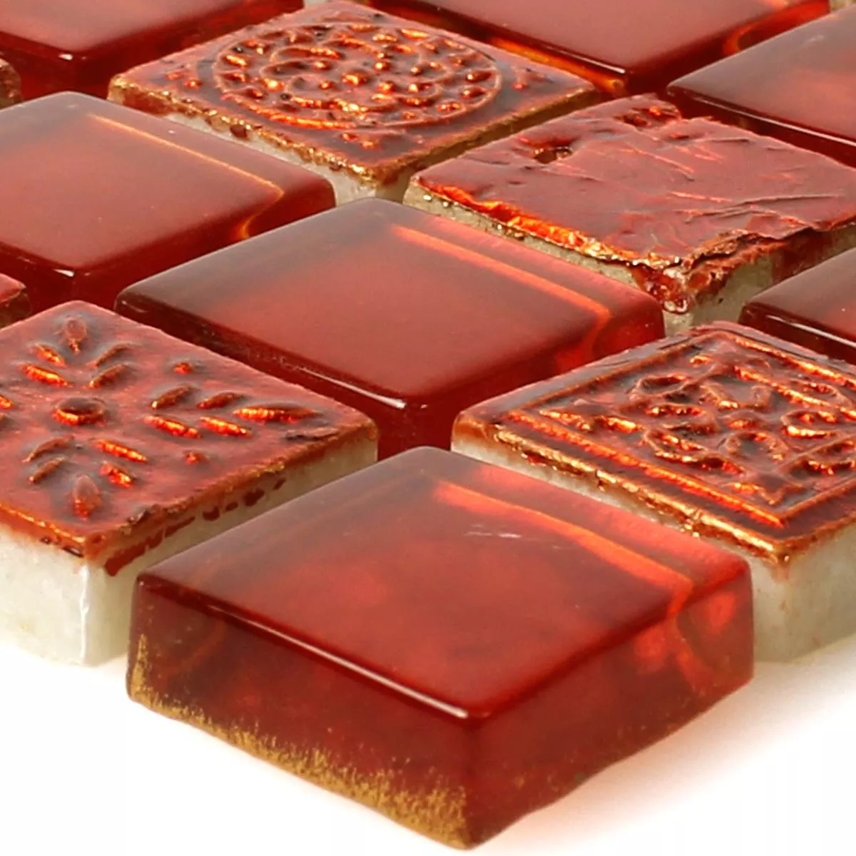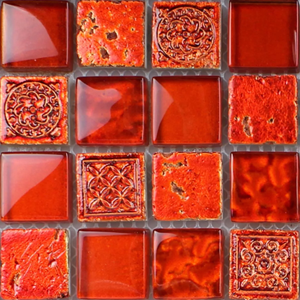 Sample Mosaic Tiles Georgia Glass Natural Stone Mix Red