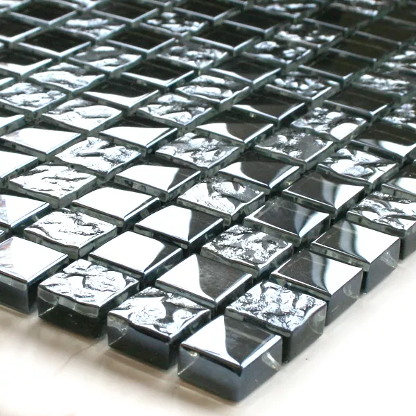 Sample Mosaic Tiles Glass Black Metal Drummed
